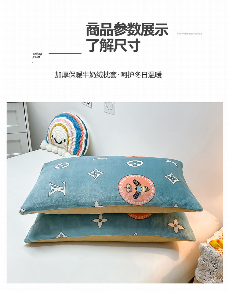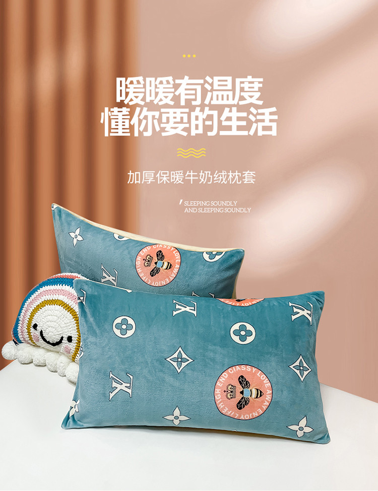 • 91家纺网 家纺一手货源 找家纺 芃成家纺 2021新款牛奶绒印花单枕套一对 休闲