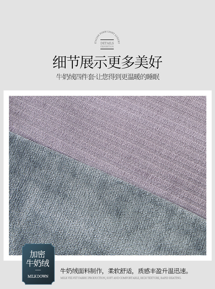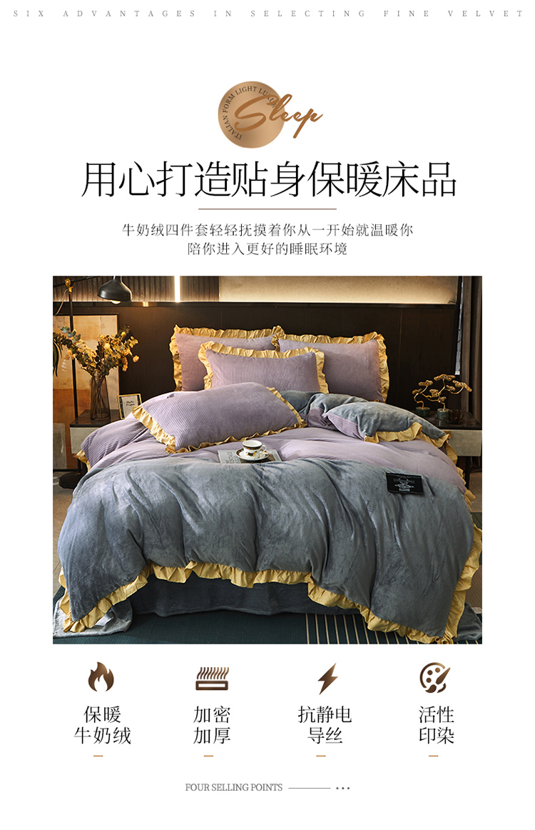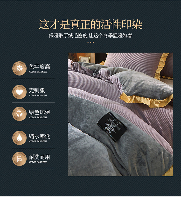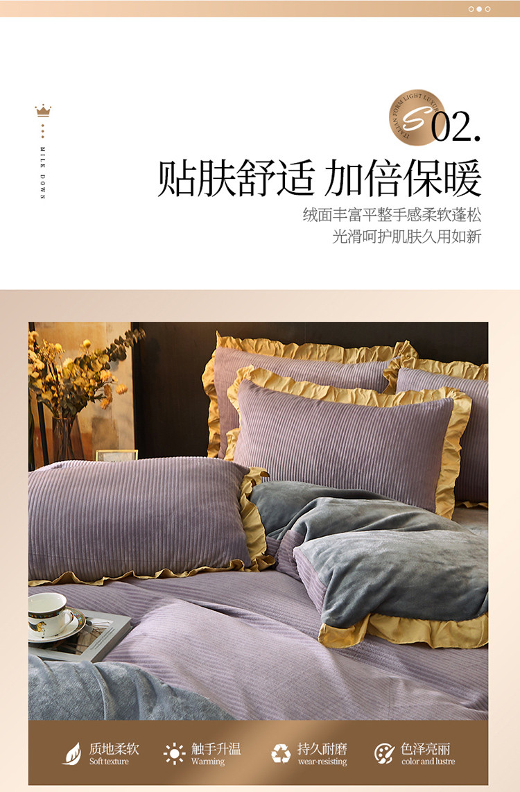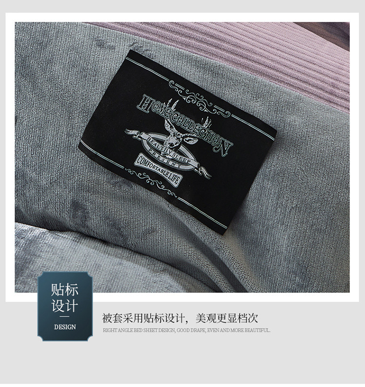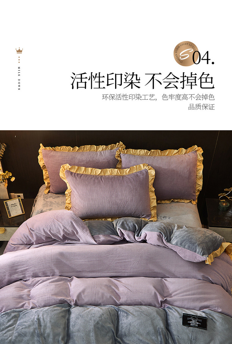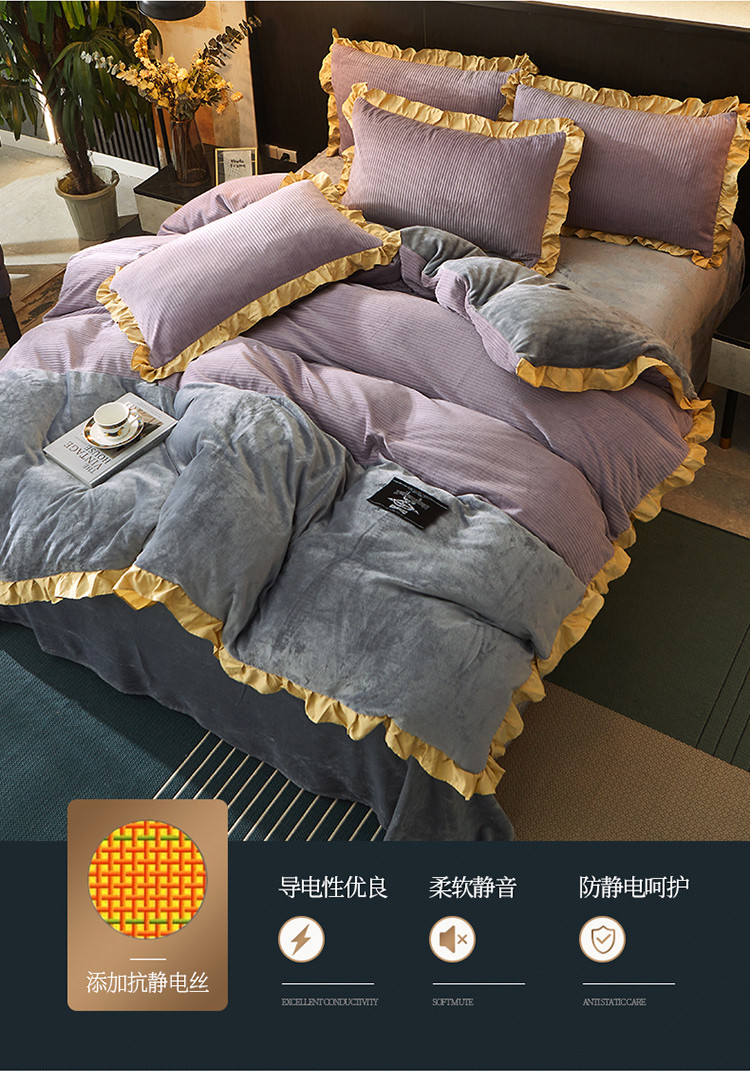 商品名称:芃成家纺 2021新款牛奶绒双拼花边四件套 条纹双拼花边紫色