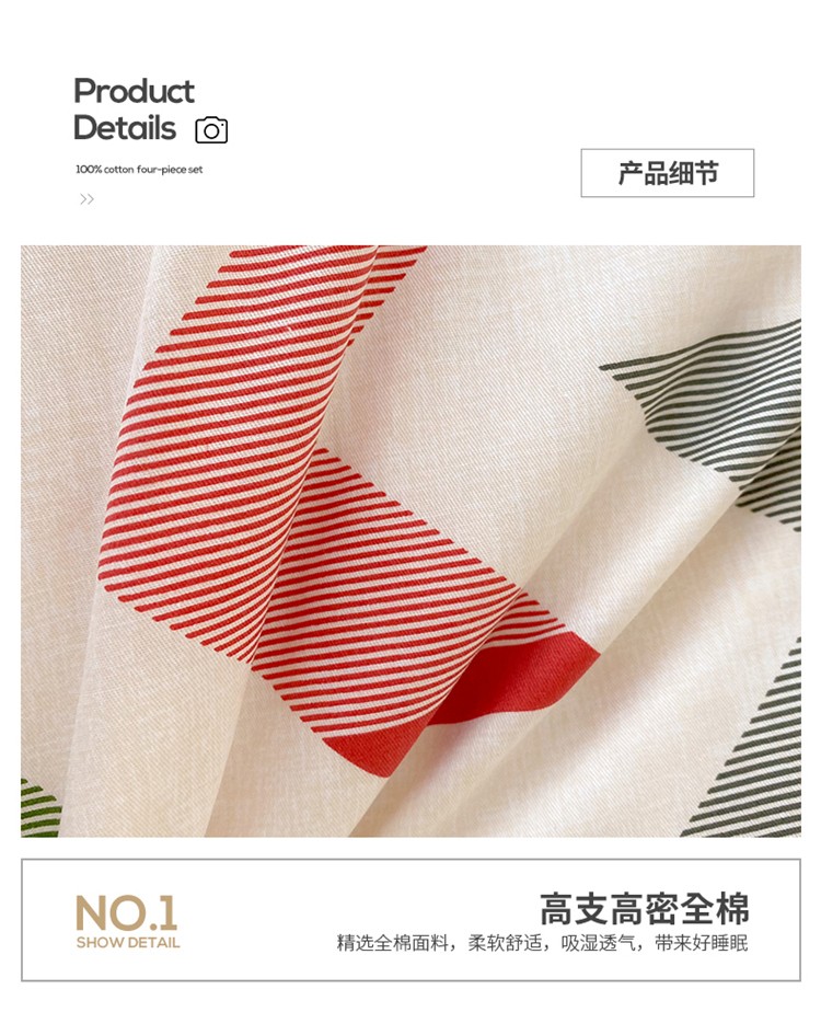 窝米 2020春夏新品全棉13372四件套小波西风系列草莓酱,草莓酱