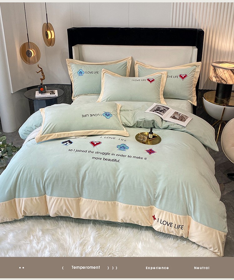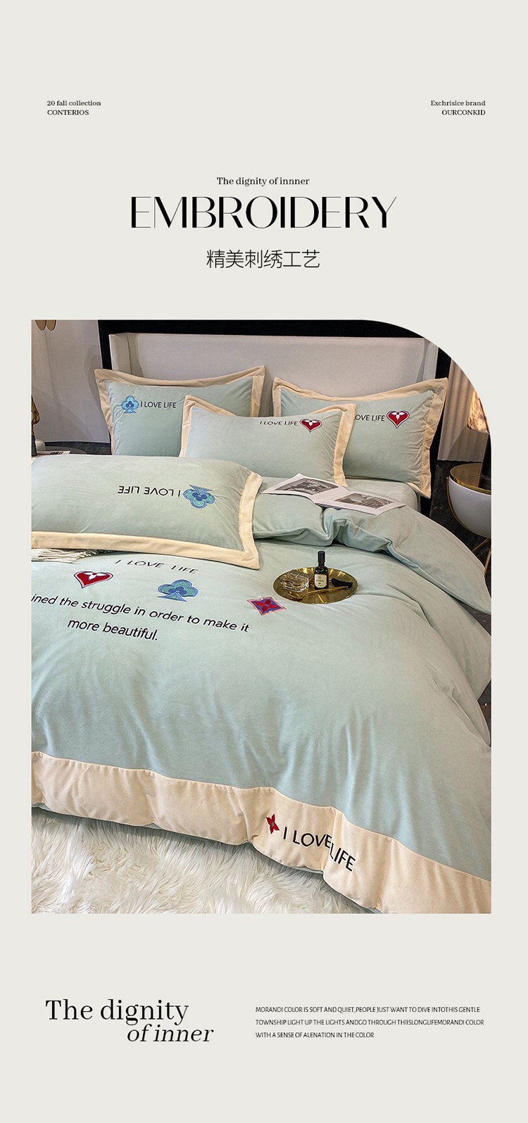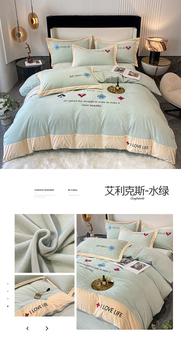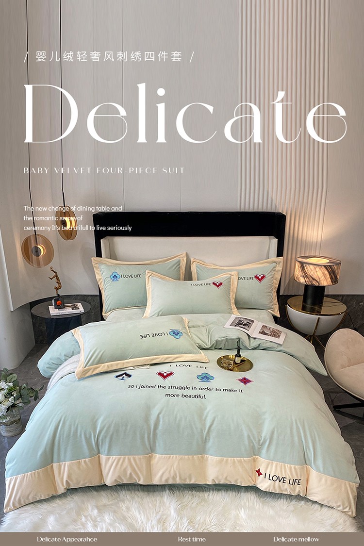 澳梵 2021【艾利克斯】婴儿绒轻奢风刺绣四件套 艾利克斯-水绿