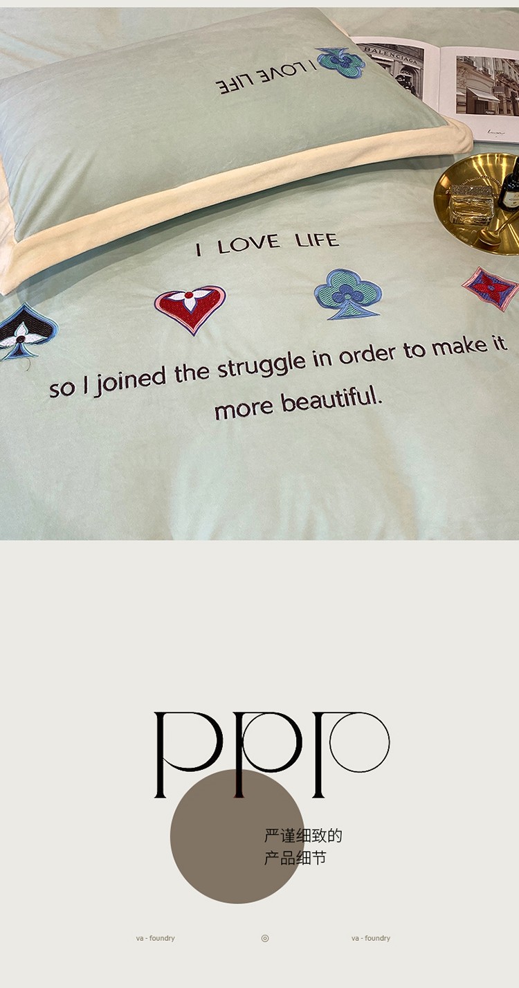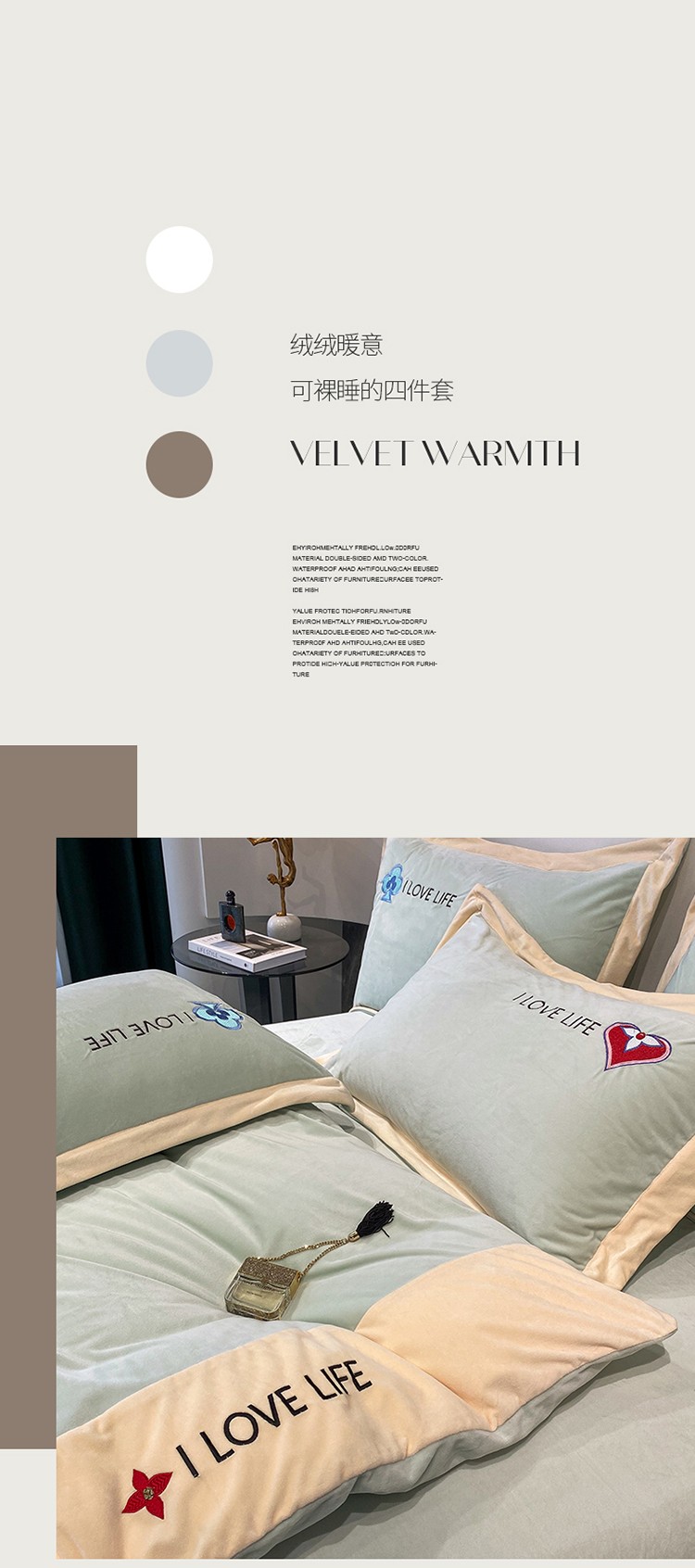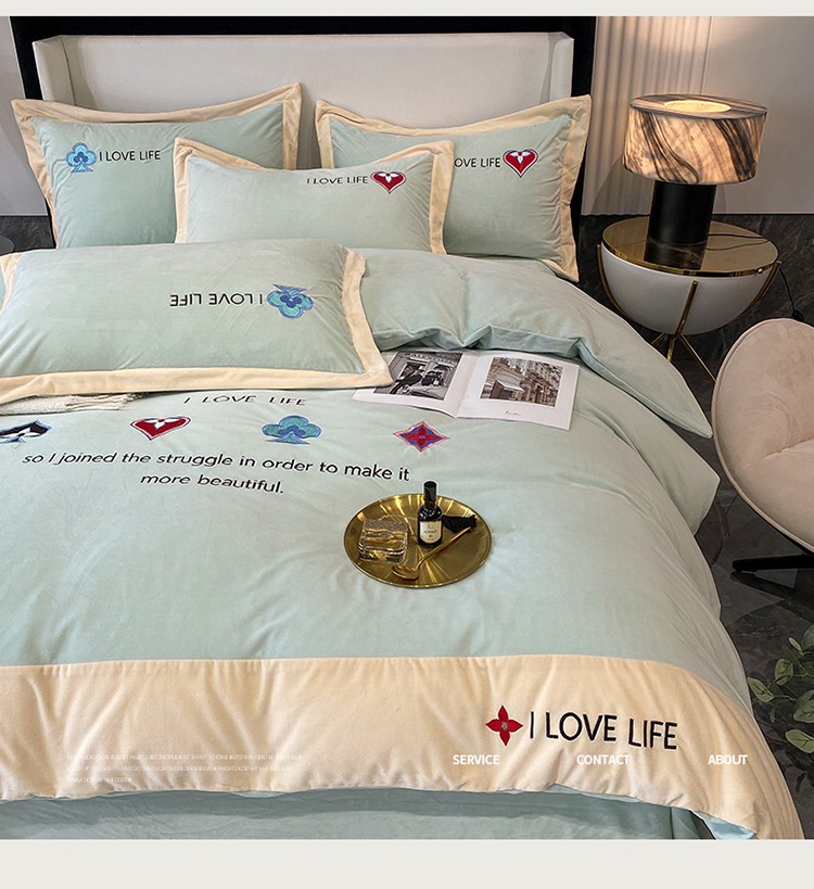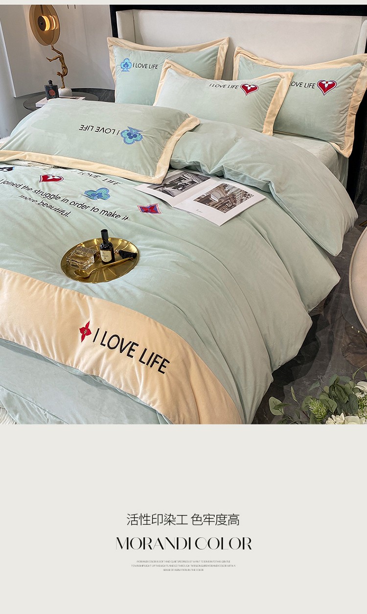 澳梵 2021【艾利克斯】婴儿绒轻奢风刺绣四件套 艾利克斯-水绿