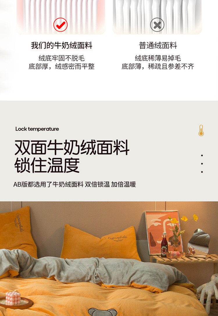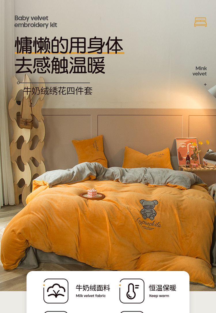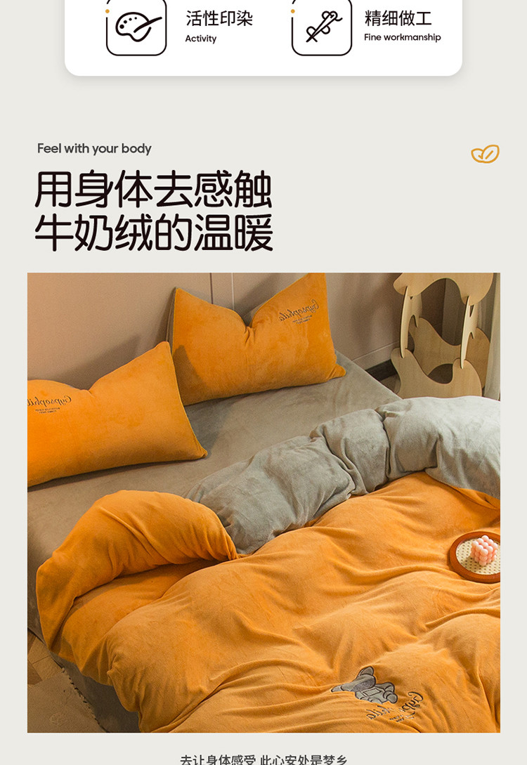 凡客家居 2021秋冬新款工艺款牛奶绒四件套 熊宝宝