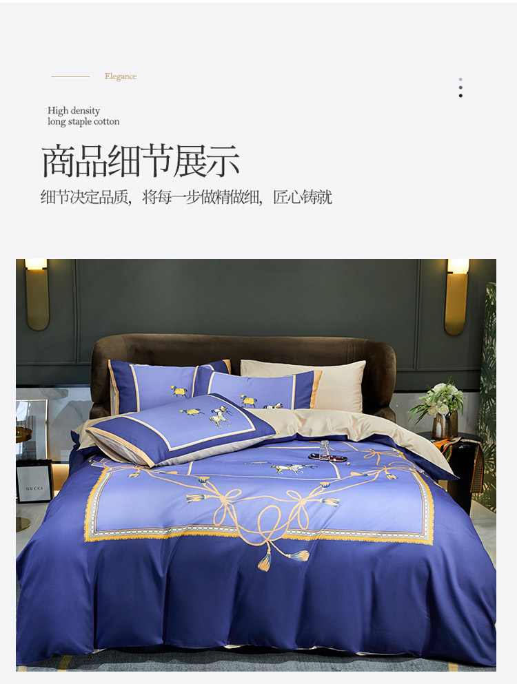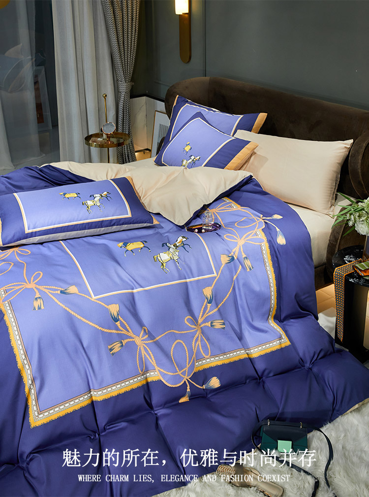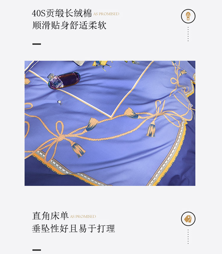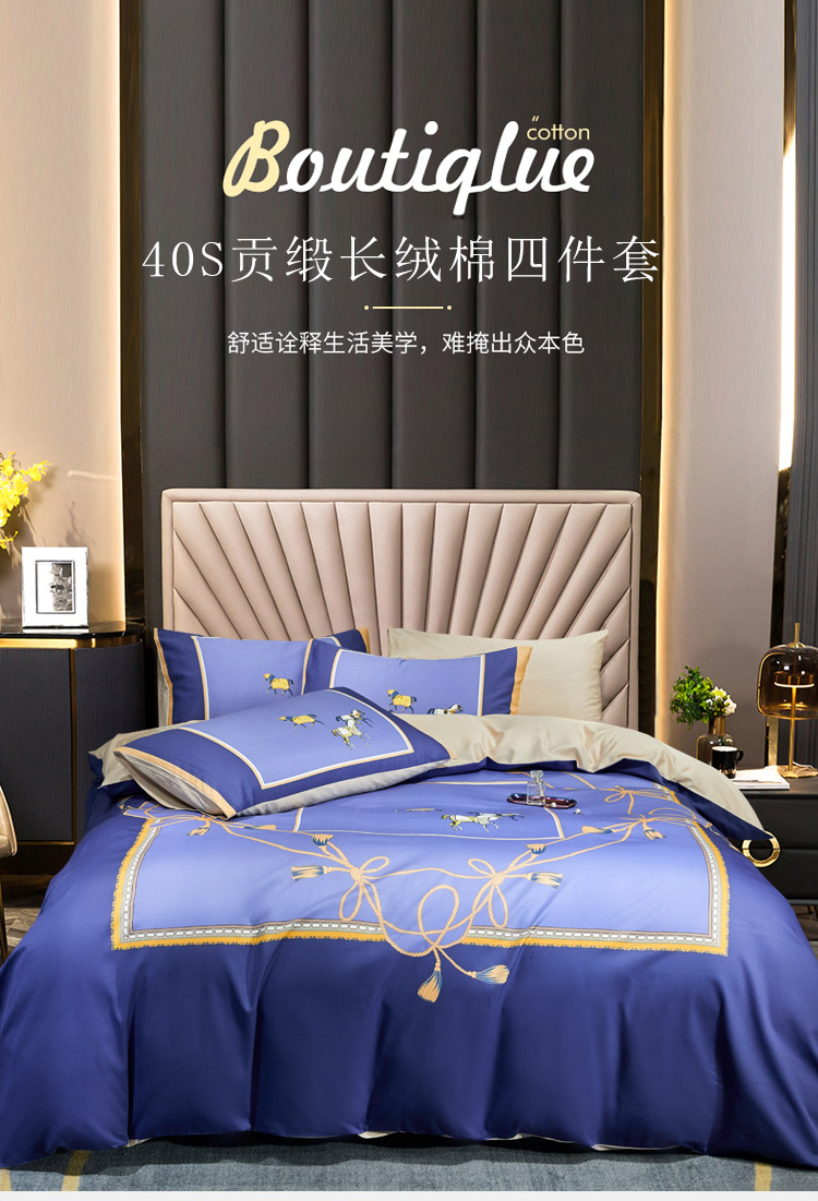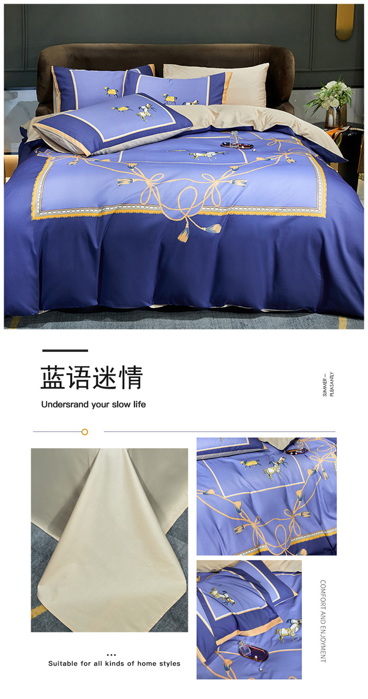 商品名称:凡客 2022春夏新款60S贡缎长绒棉印花四件套 蓝语迷情