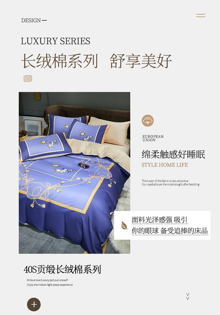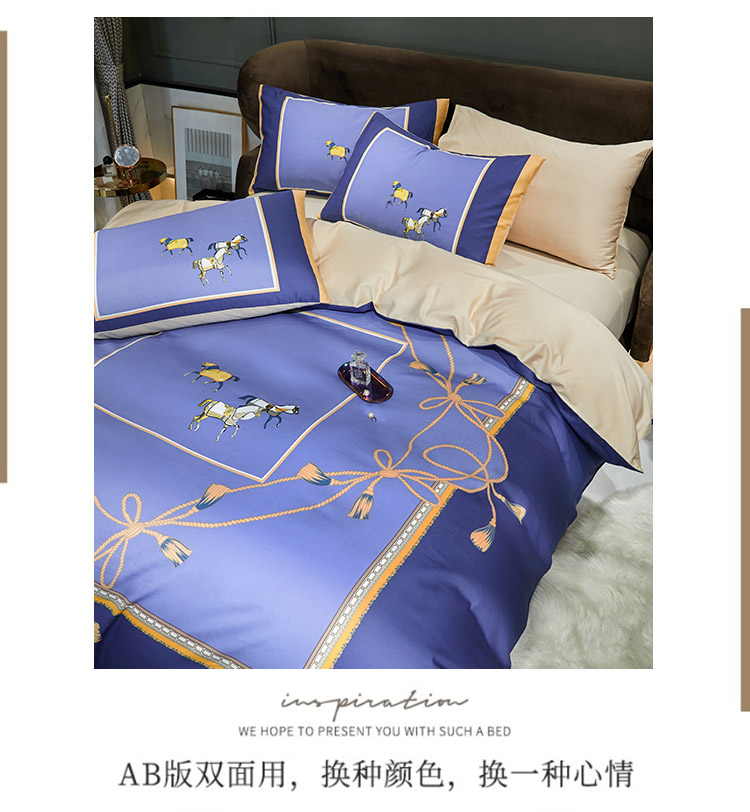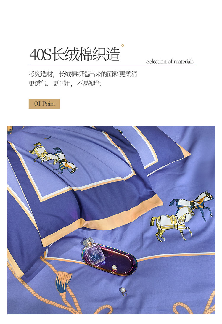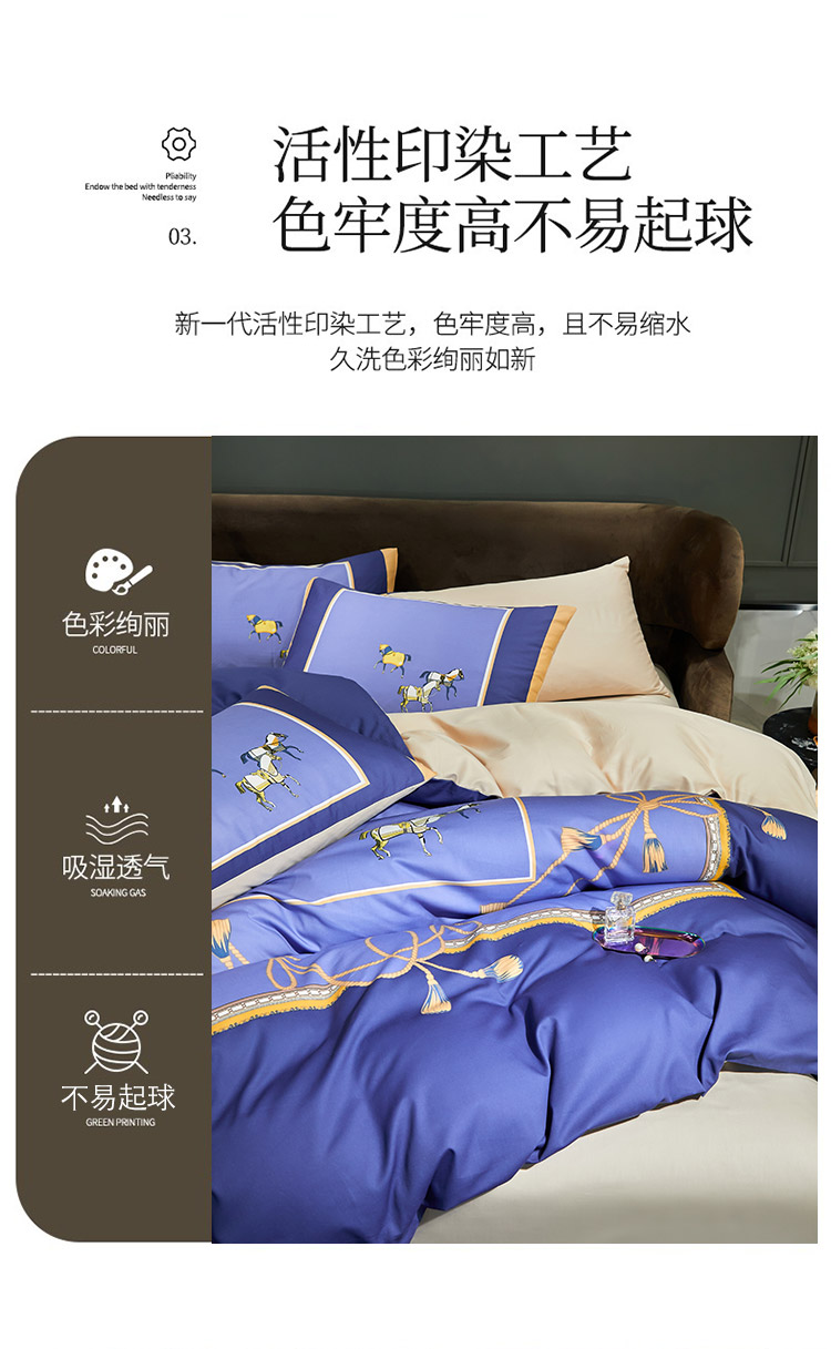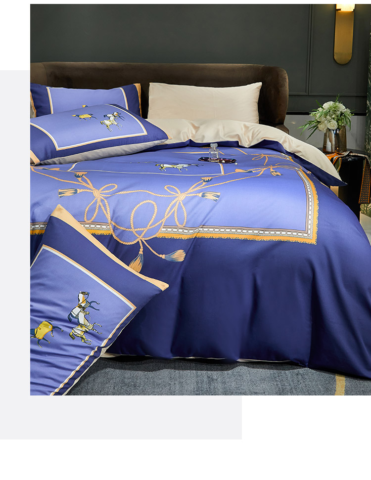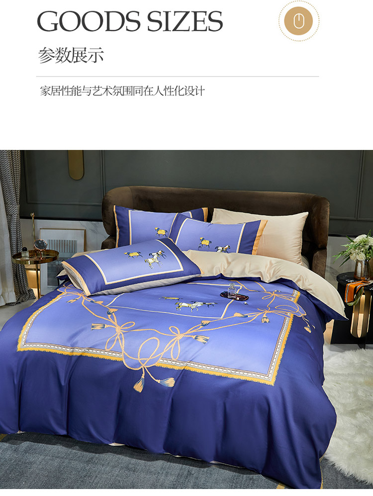 商品名称:凡客 2022春夏新款60S贡缎长绒棉印花四件套 蓝语迷情