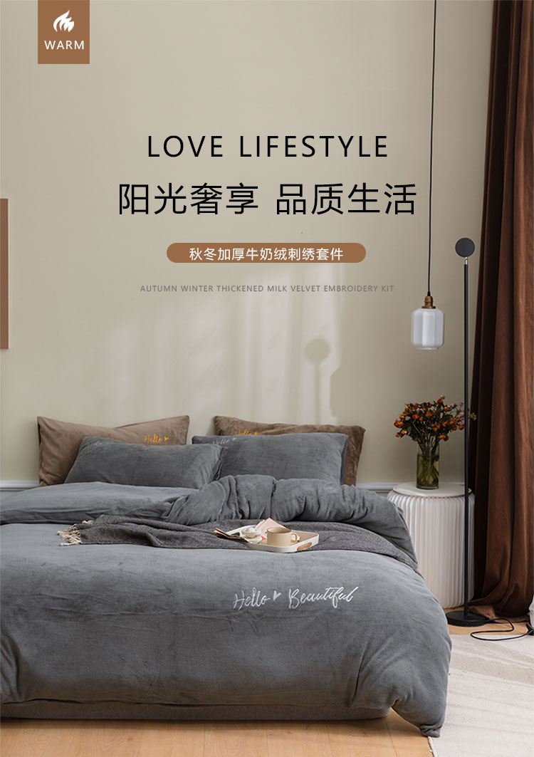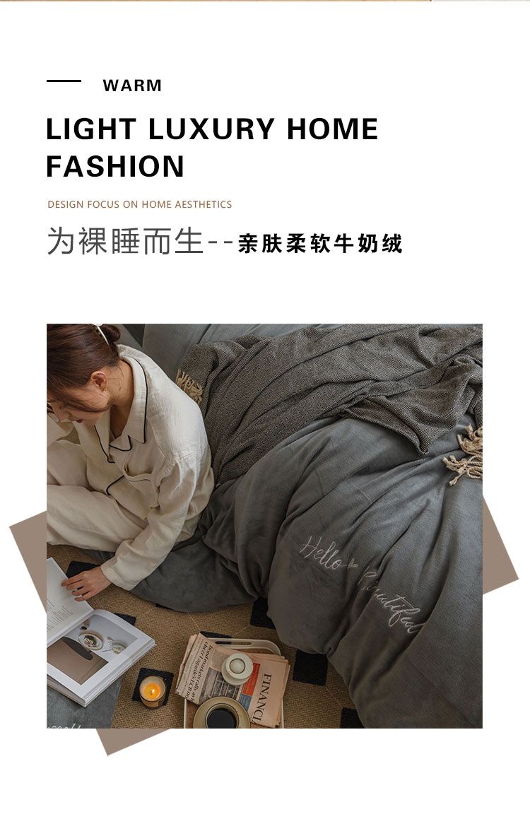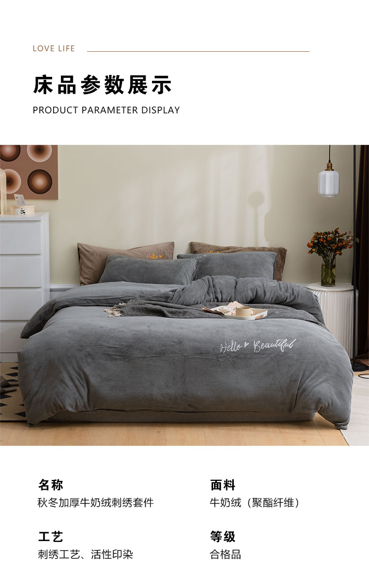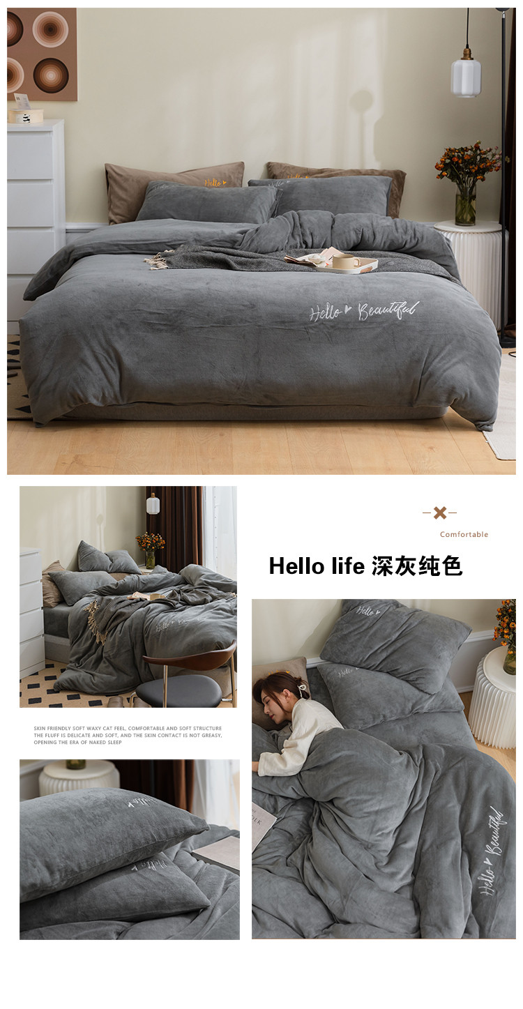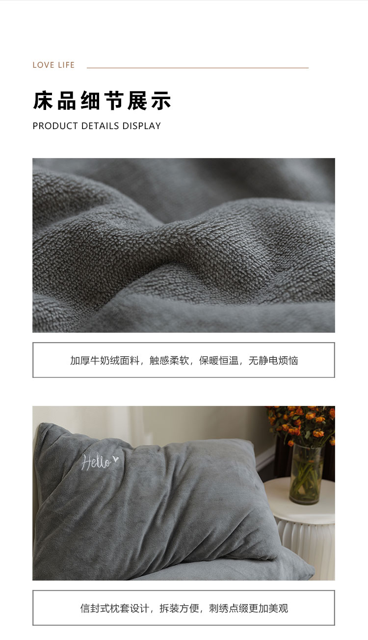 当前位置: 91家纺网 > 商品网购 > 床品套件 > 四件套 > 牛奶绒四件套 > 寐眠2021新款牛奶绒四件套 hello-life深灰纯色