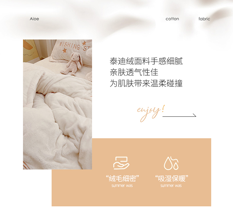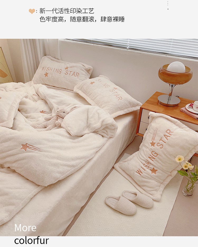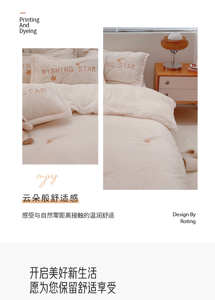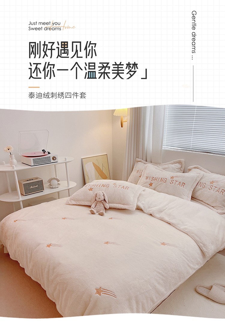 雅居纺 2022新款泰迪绒绣花四件套拍摄风格1 许愿星-白