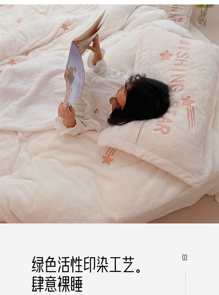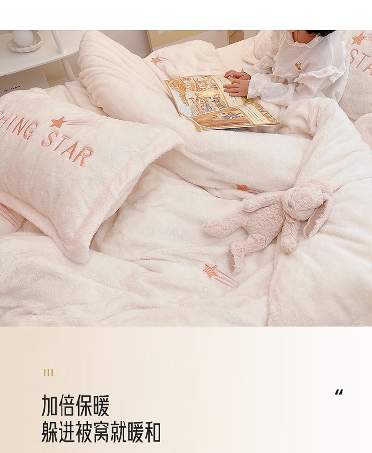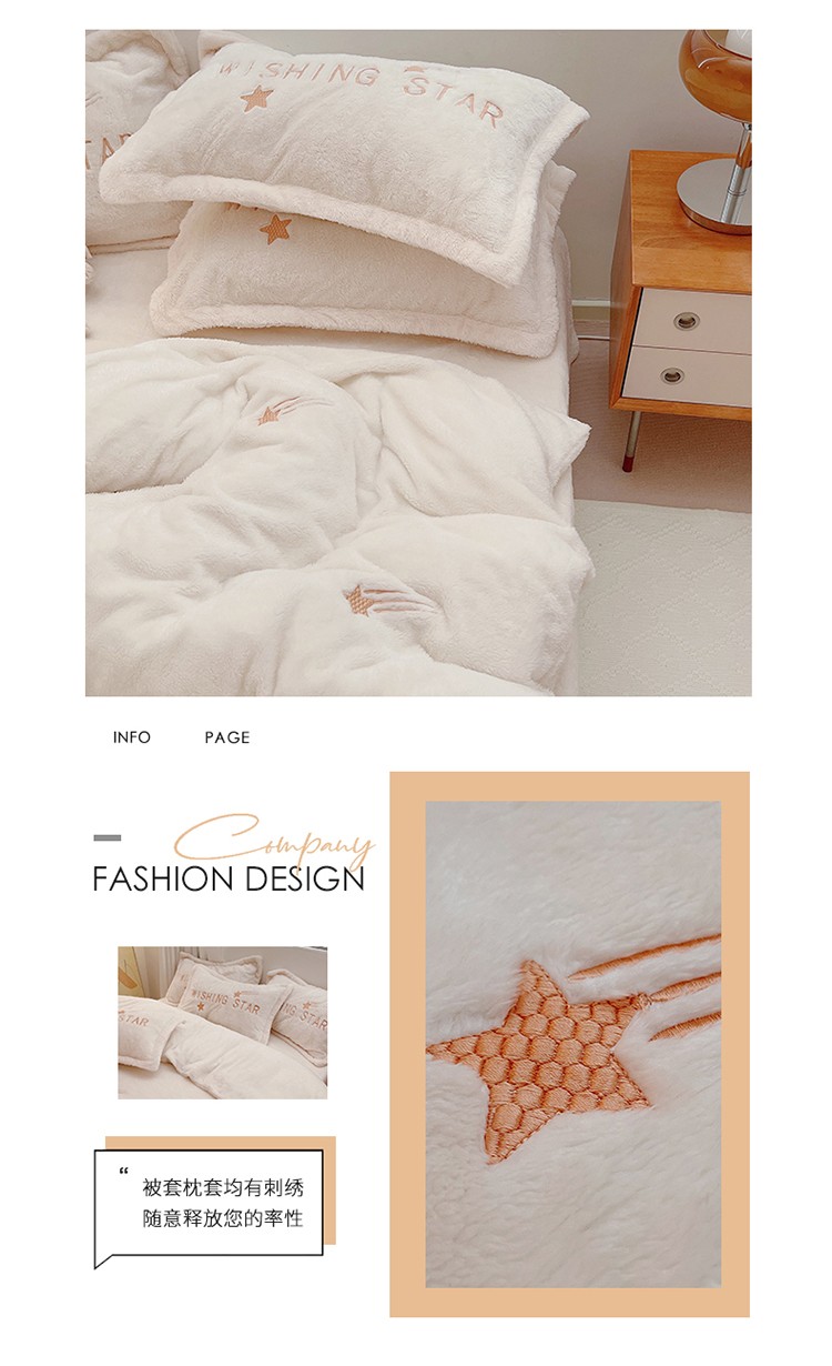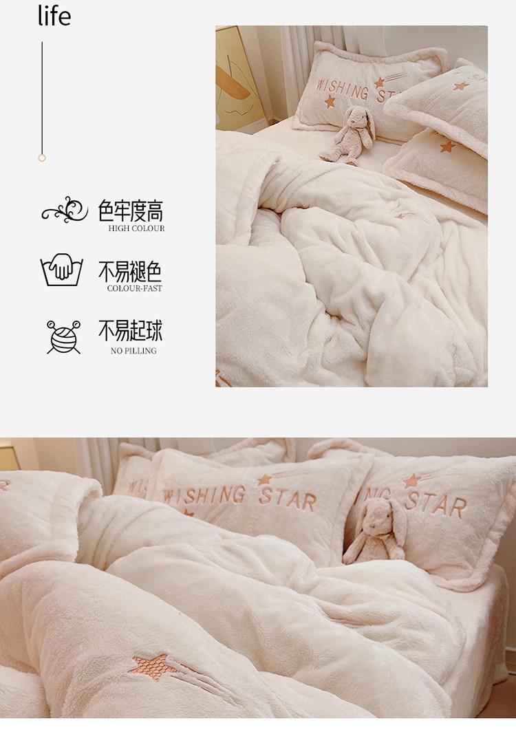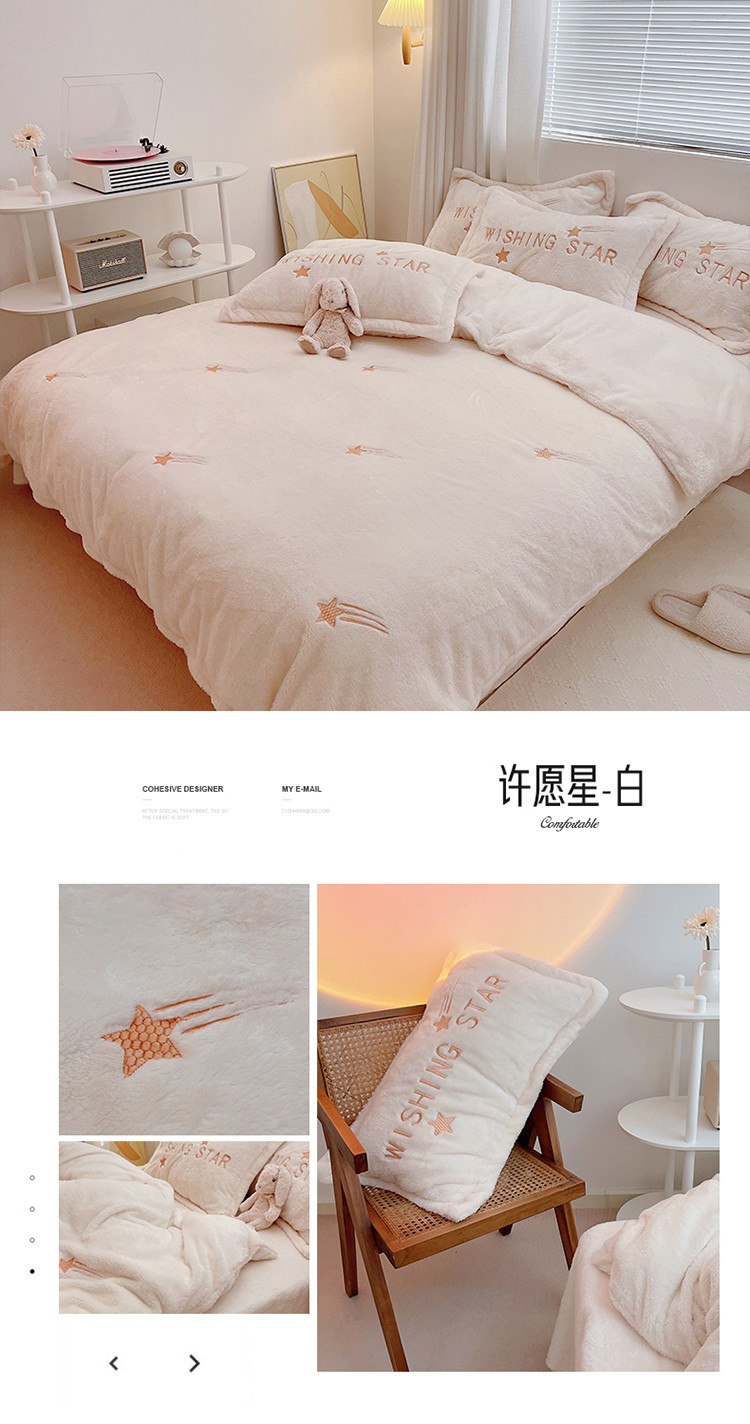 商品名称:雅居纺 2022新款泰迪绒绣花四件套拍摄风格1 许愿星-白