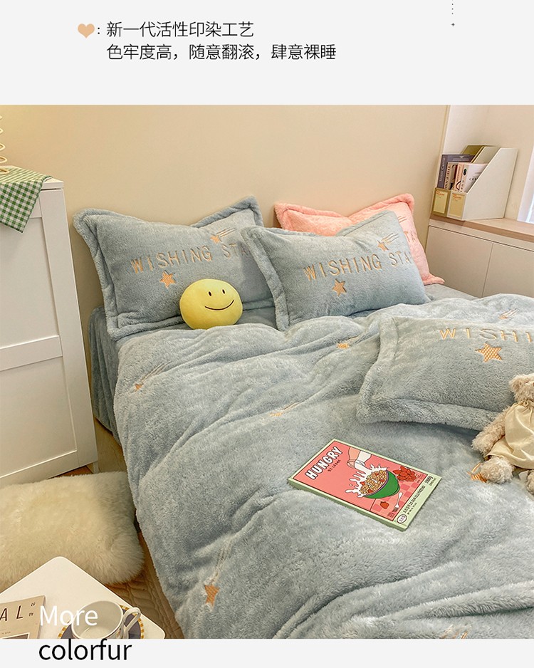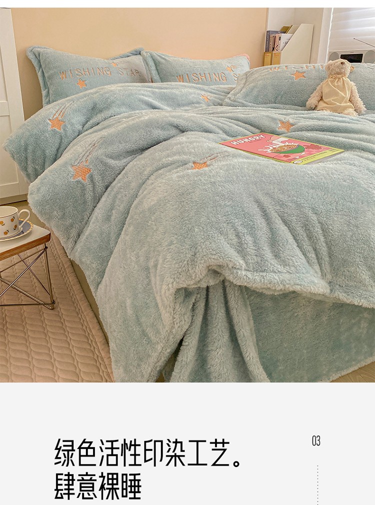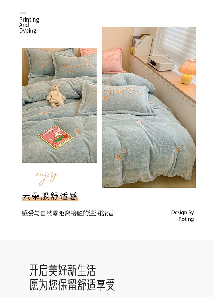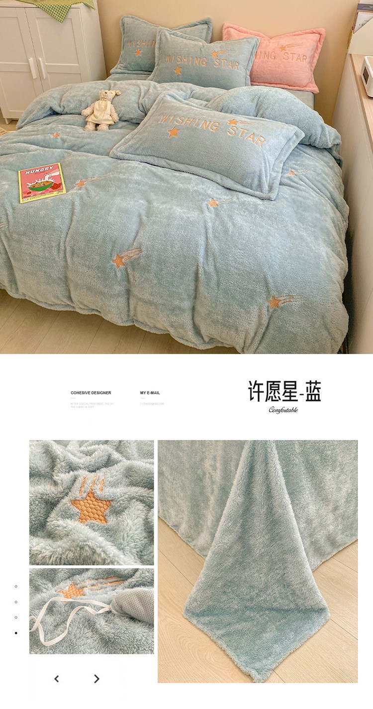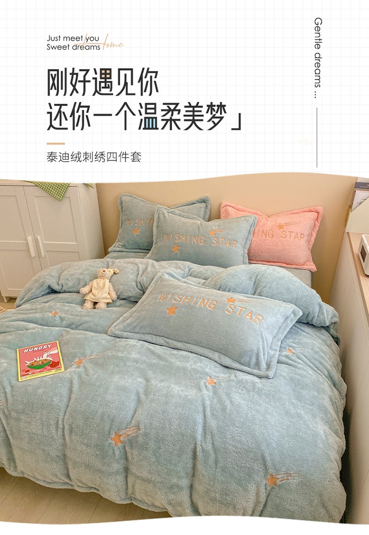 商品名称:雅居纺 2022新款泰迪绒绣花四件套拍摄风格2 许愿星-蓝