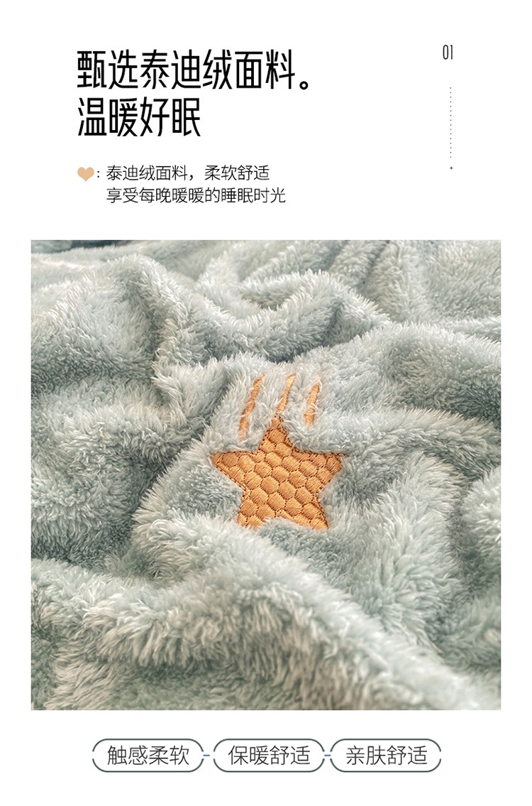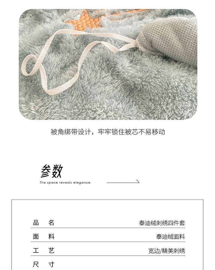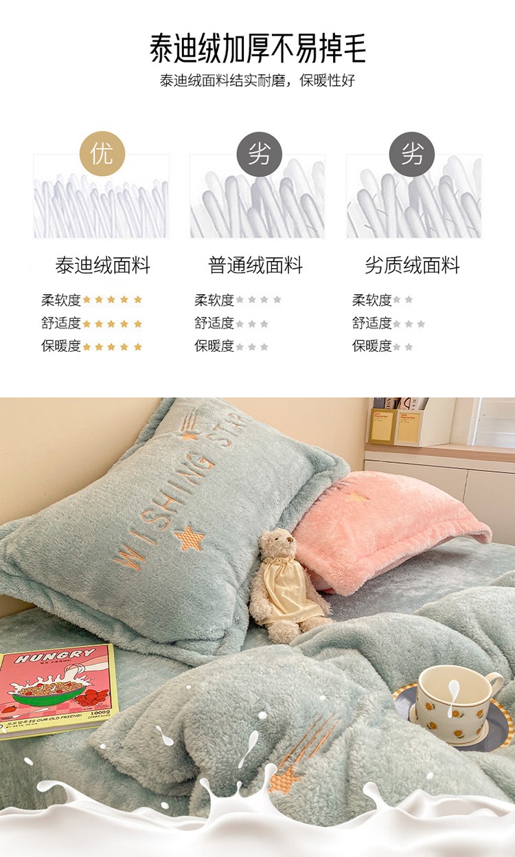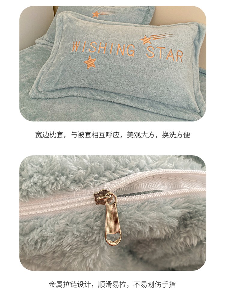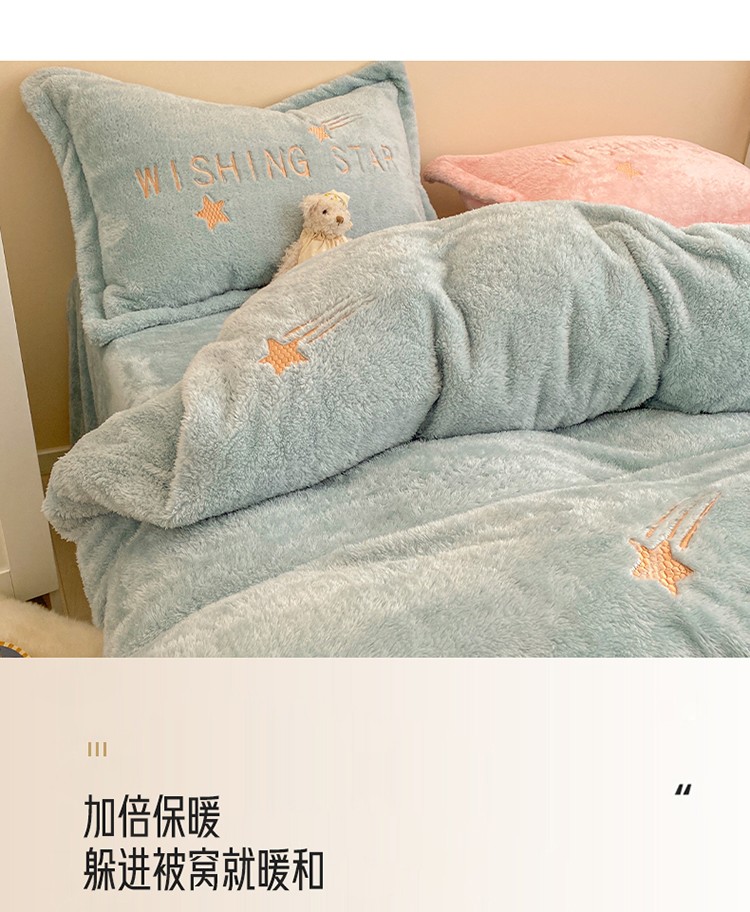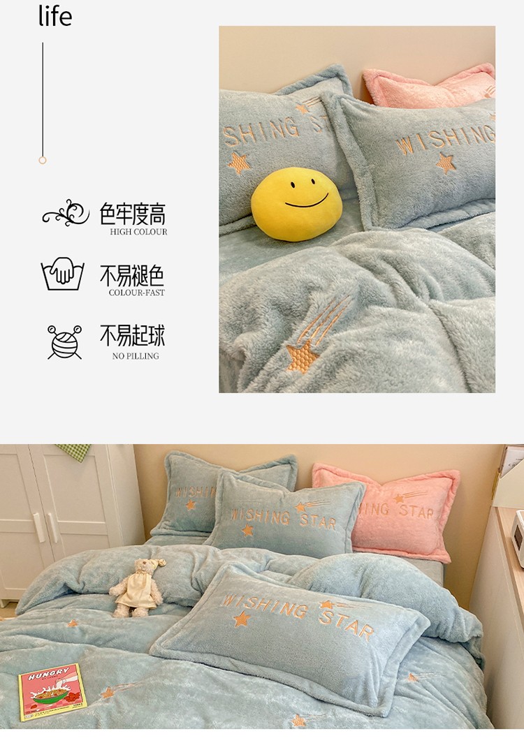 商品名称:雅居纺 2022新款泰迪绒绣花四件套拍摄风格2 许愿星-蓝