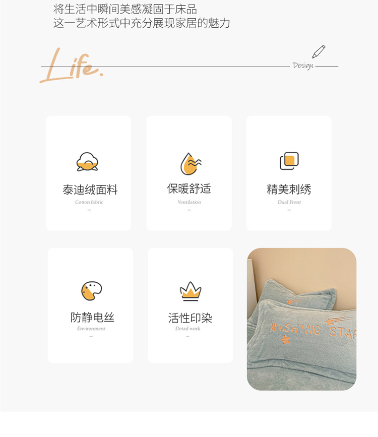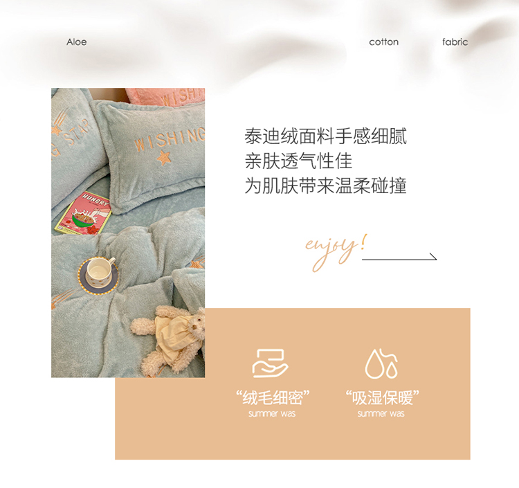 雅居纺 2022新款泰迪绒绣花四件套拍摄风格2 许愿星-蓝