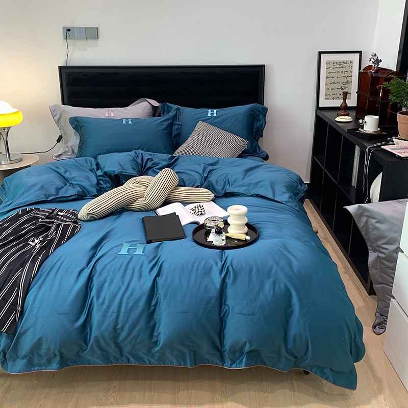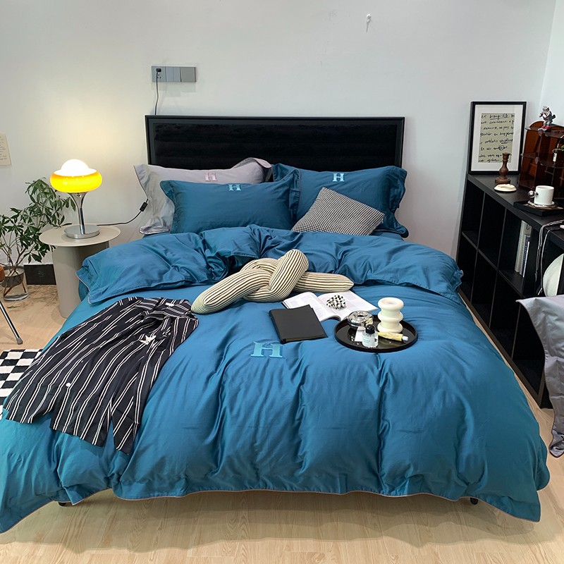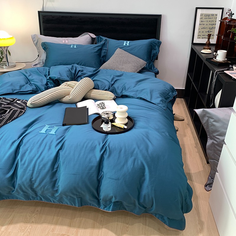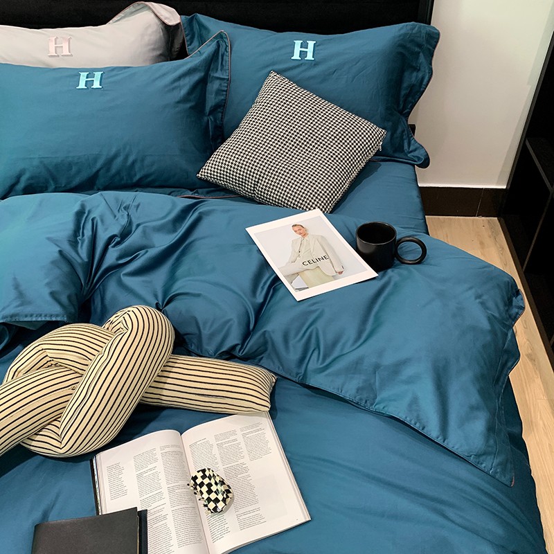 橘滋 2021新款100支长绒棉四件套-H系列 H孔雀蓝