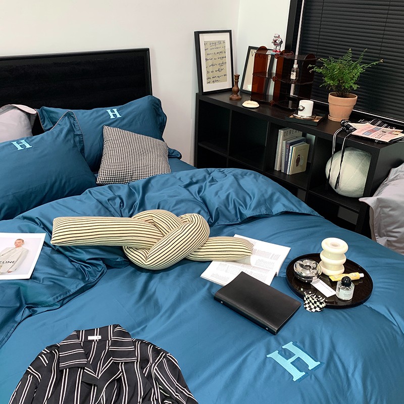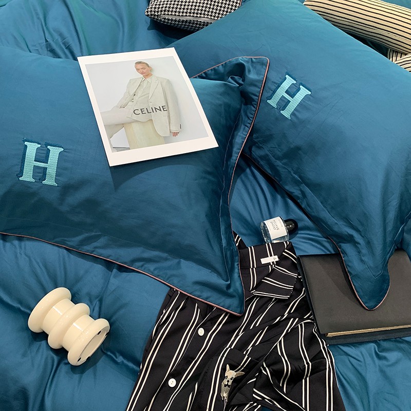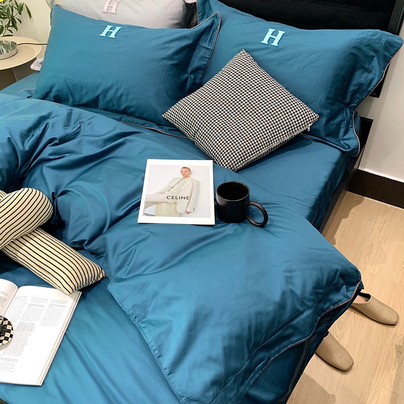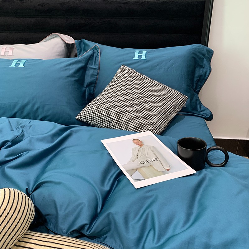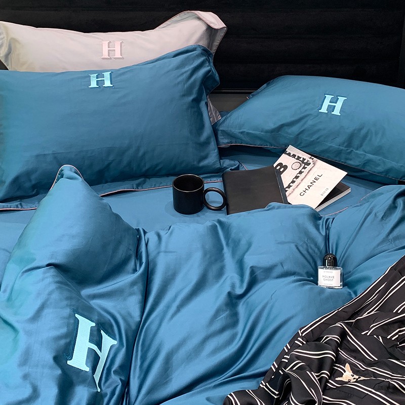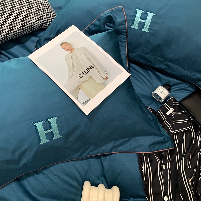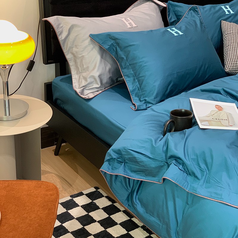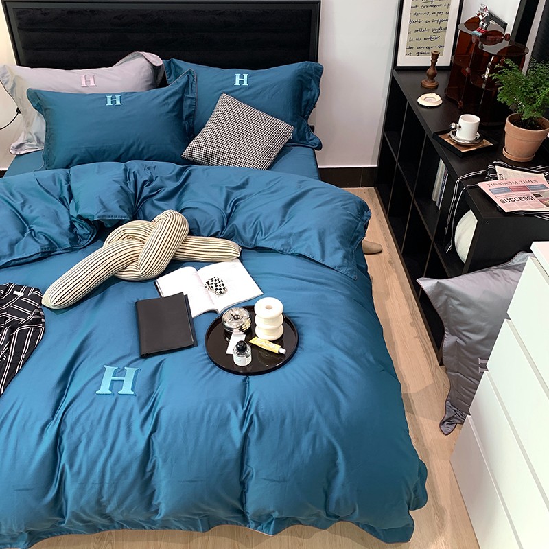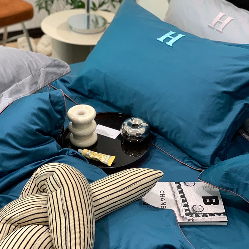 商品名称:橘滋 2021新款100支长绒棉四件套-H系列 H孔雀蓝