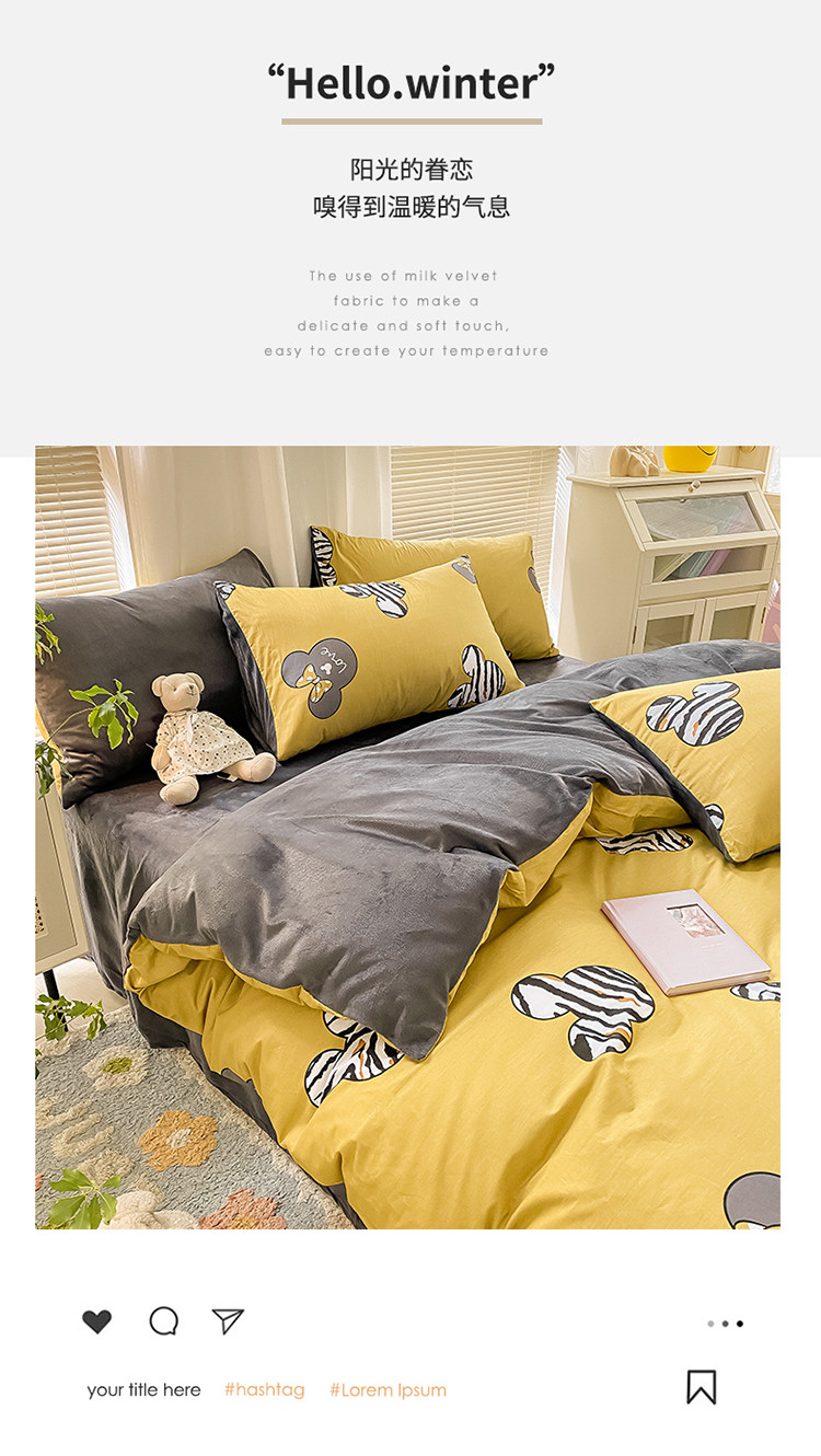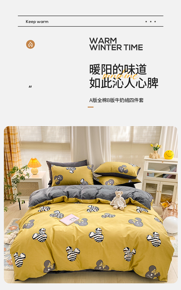 商品名称:2022新款全棉+水晶绒四件套 乐园-黄