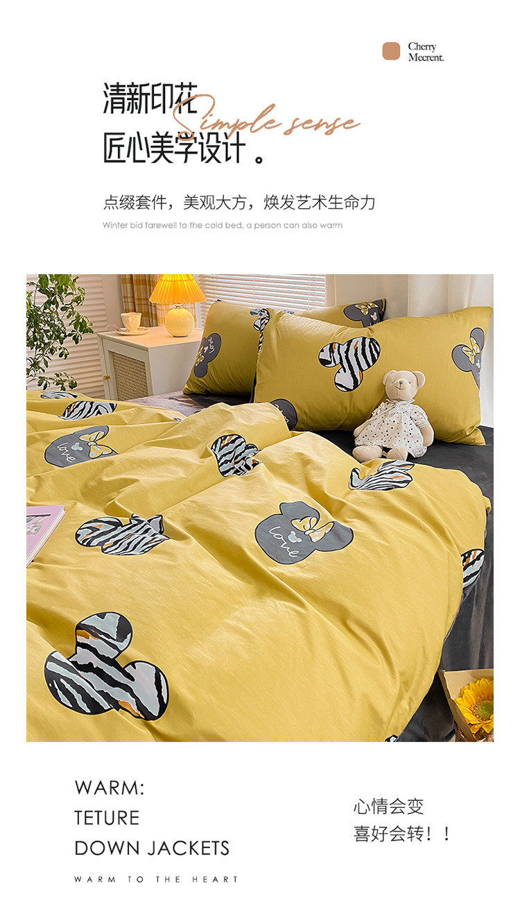 (总)雅居纺家纺 2022新款13070全棉印花四件套,波纹,多彩,简笔画,莓关系,奶油绿豹纹,倾心,数字