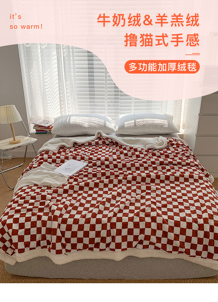 商品名称:网客家纺 2024新款棋盘格多功能毯 红