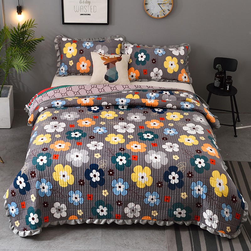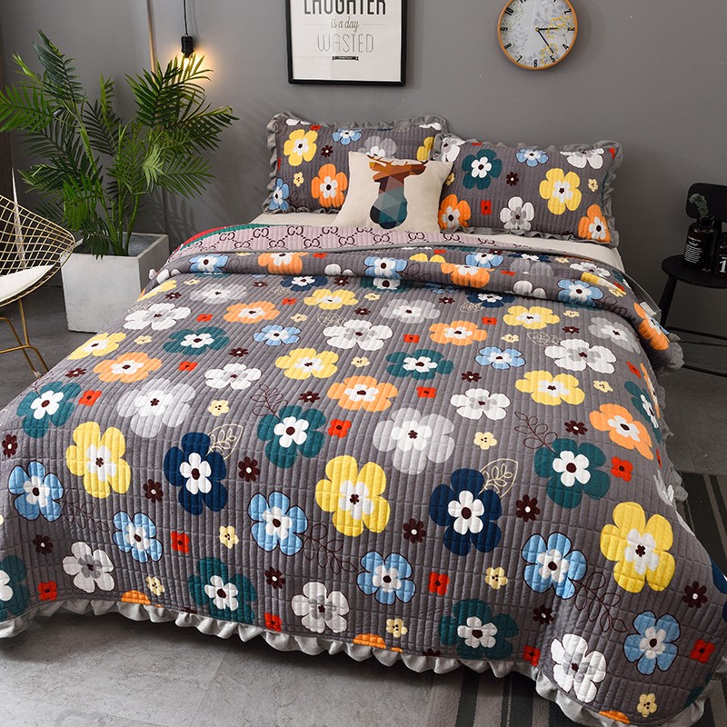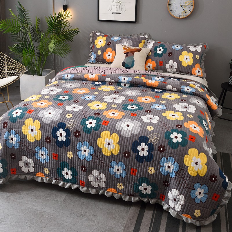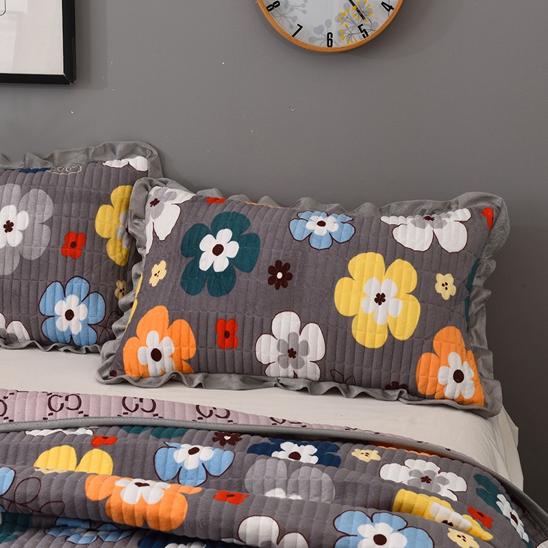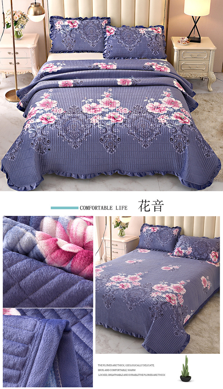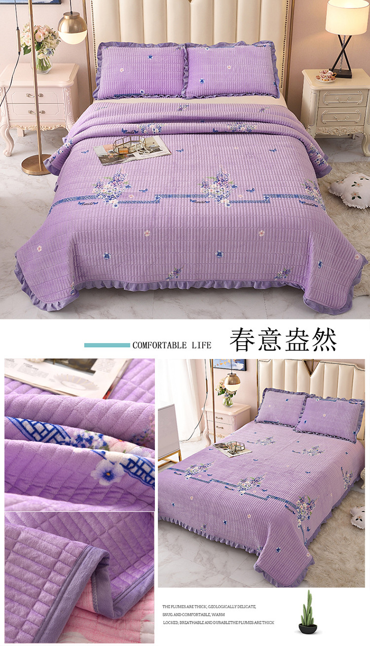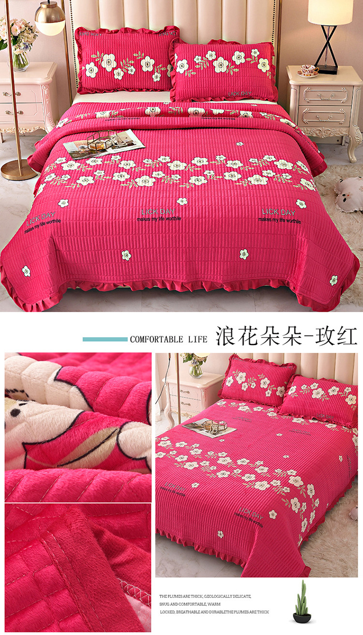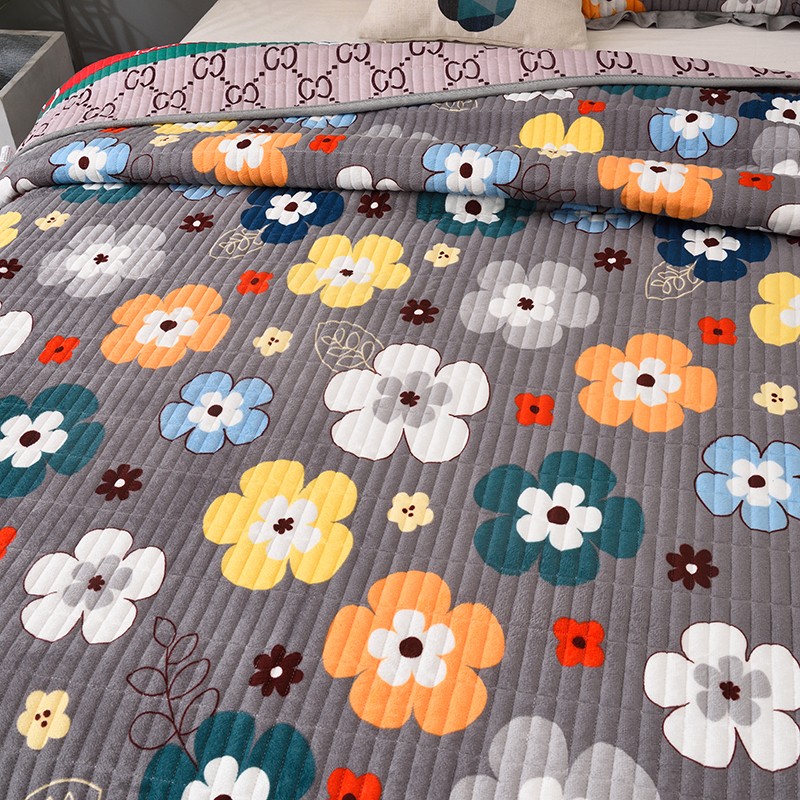 雨洋家纺 2025新款水晶绒床盖 五彩花朵