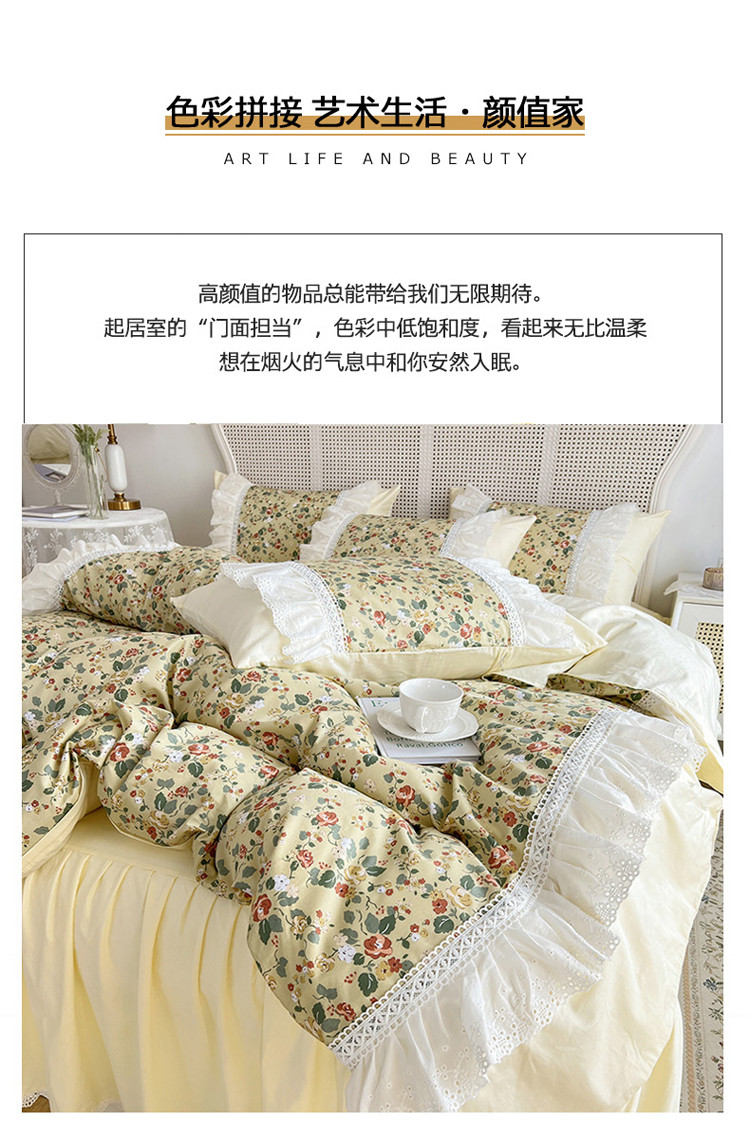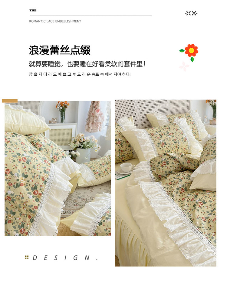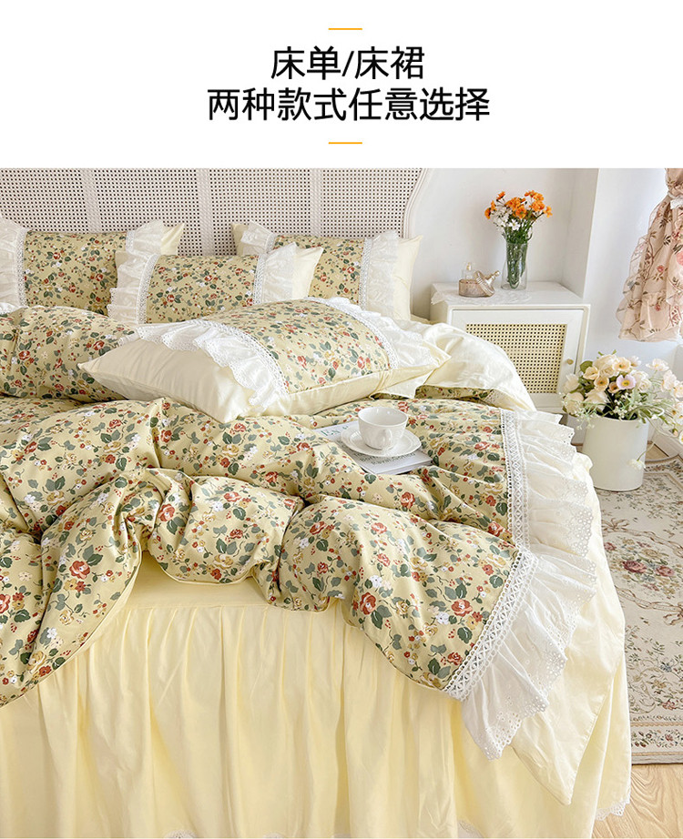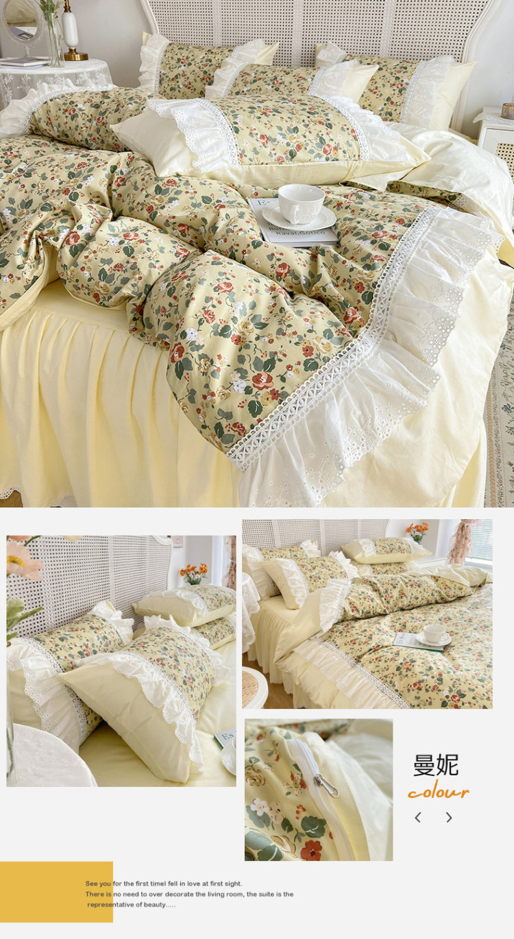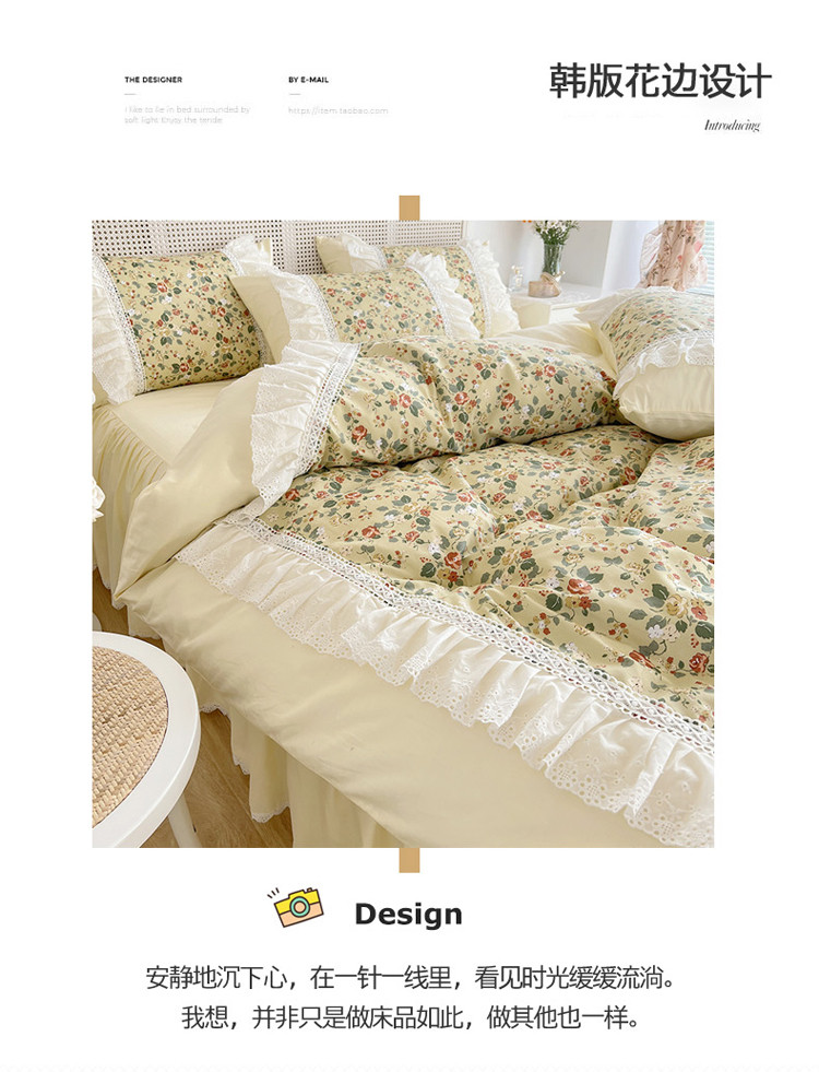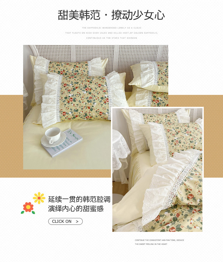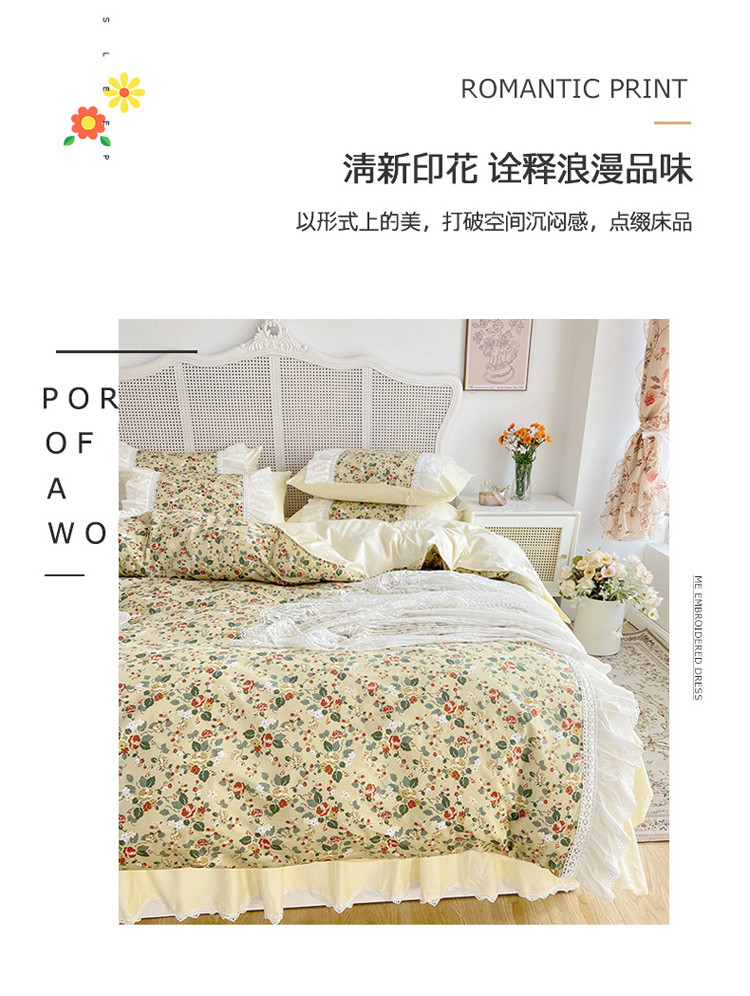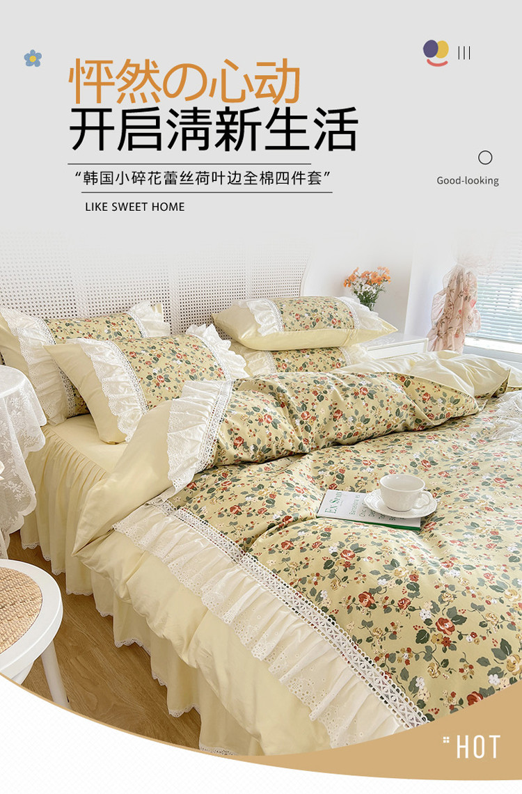 当前位置: 91家纺网 > 商品网购 > 床品套件 > 四件套 > 全棉普通四件套 > 菊上家纺 2022春款新款韩国小碎花四件套 曼妮