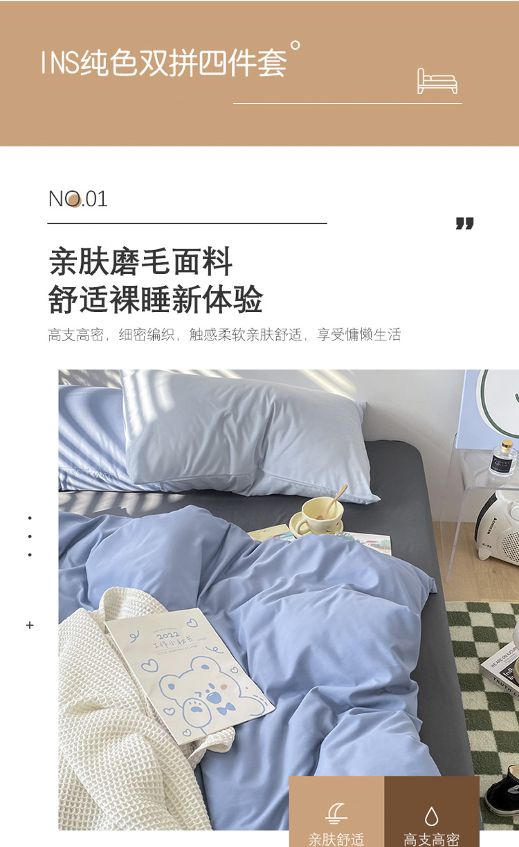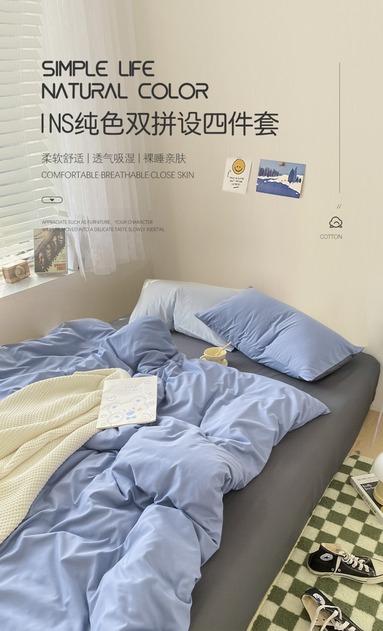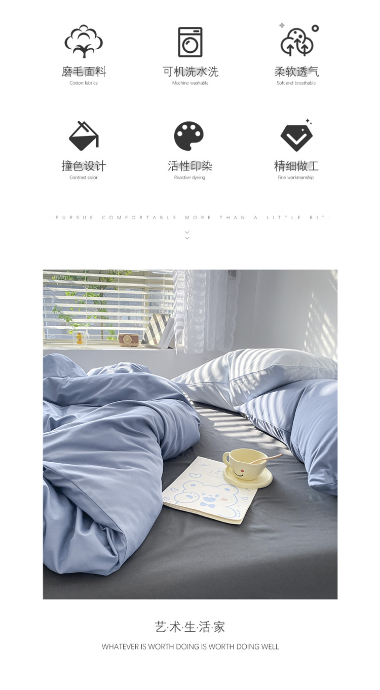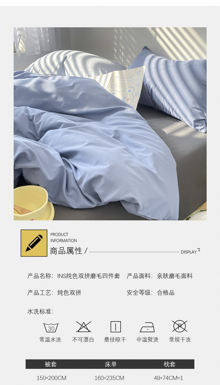 当前位置: 91家纺网 > 商品网购 > 床品套件 > 四件套 > 普通磨毛四件套 > 雨帆 2023新款ins纯色双拼磨毛四件套 深蓝灰