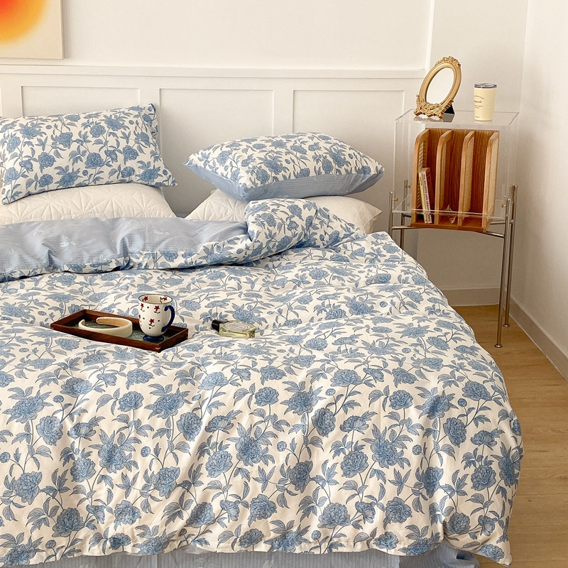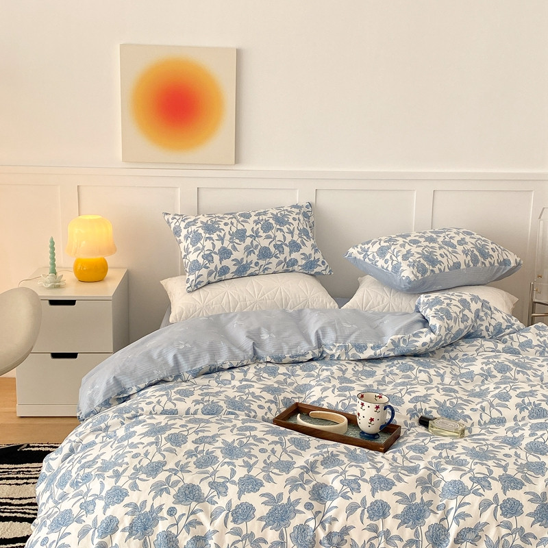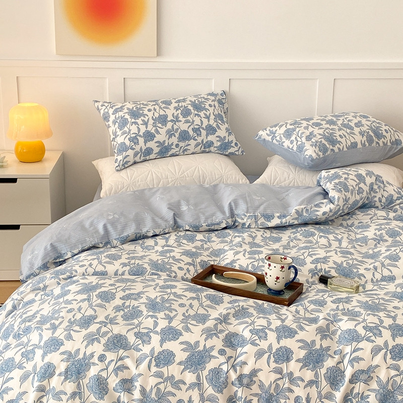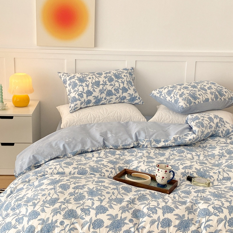 商品名称:昔可家纺 2022新款全棉复古杜桑系列四件套 碎冰蓝