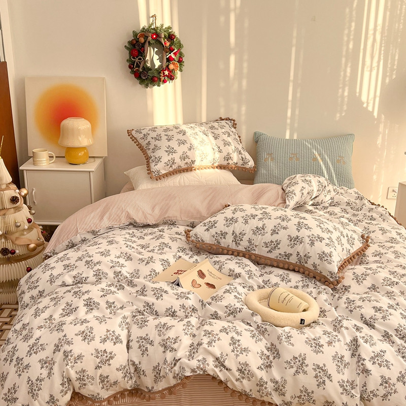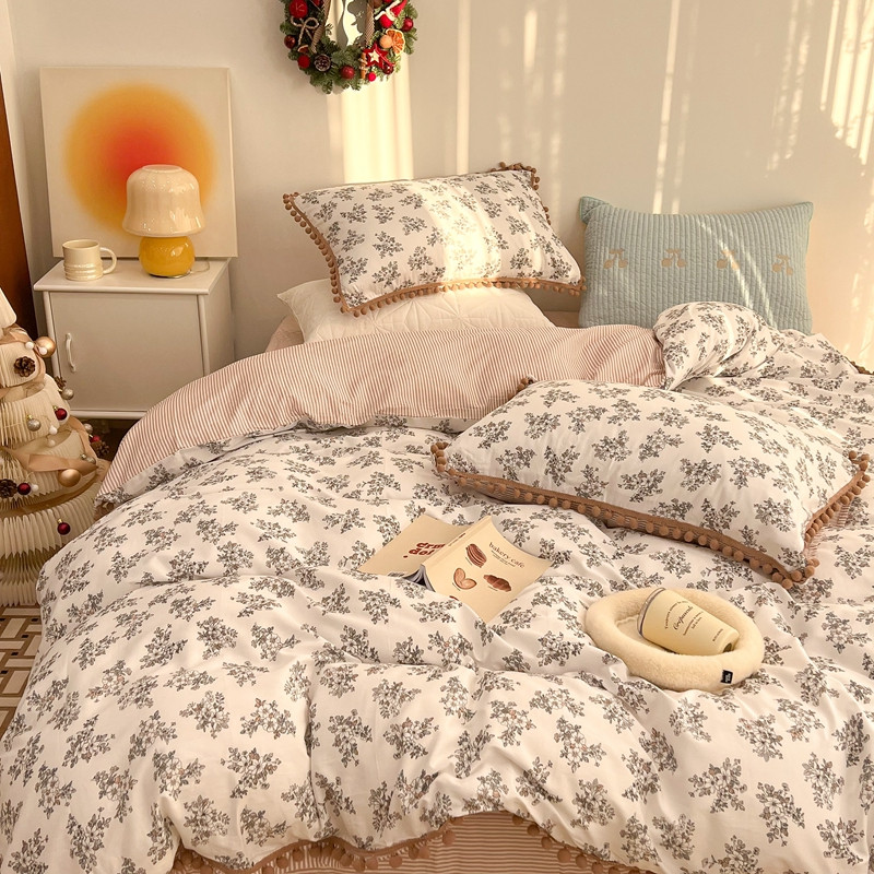 昔可家纺 2022新款全棉毛球碎花款四件套 素雅花