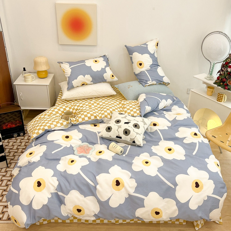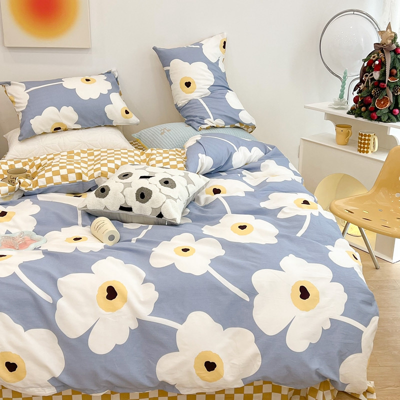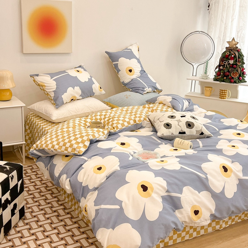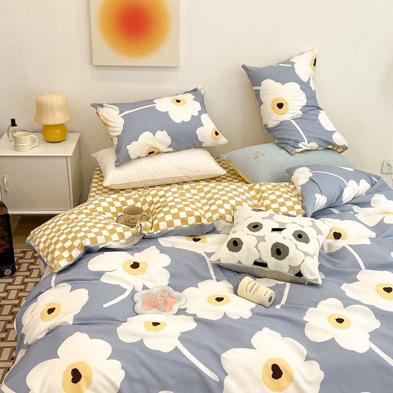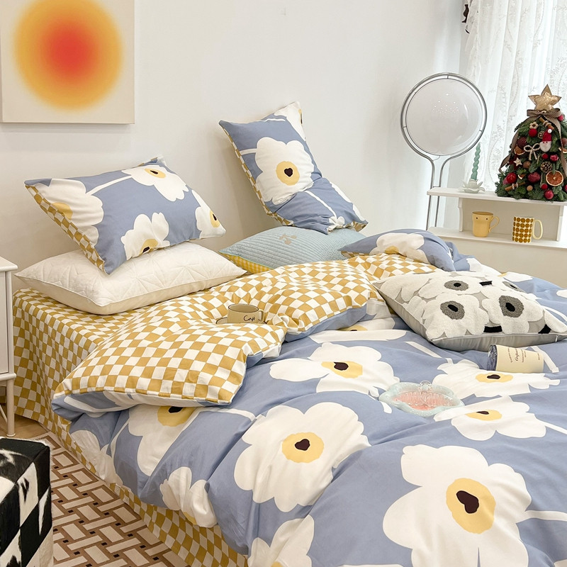 昔可家纺 2022新款13372普通款四件套 棋盘复古花蓝