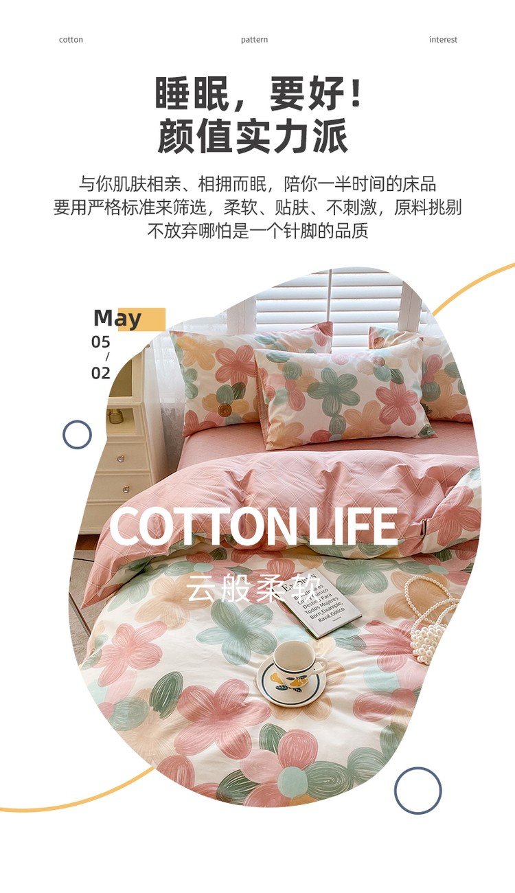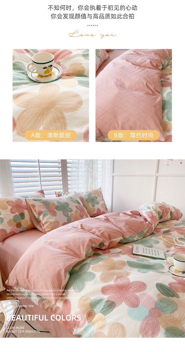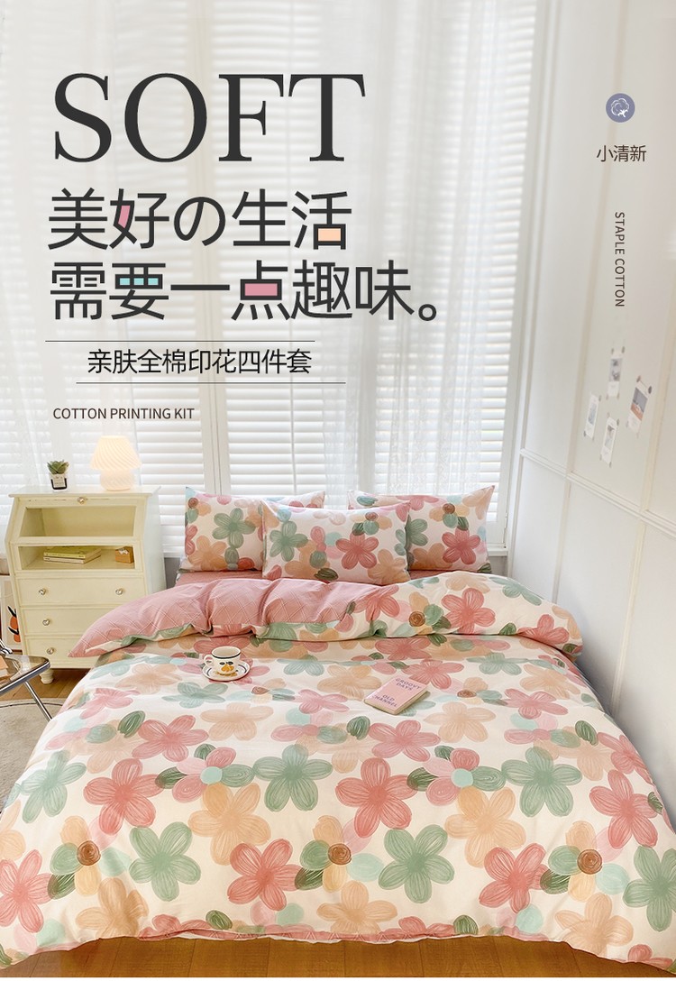 商品名称:优彩 2022新款全棉时尚花卉系列四件套 七色堇
