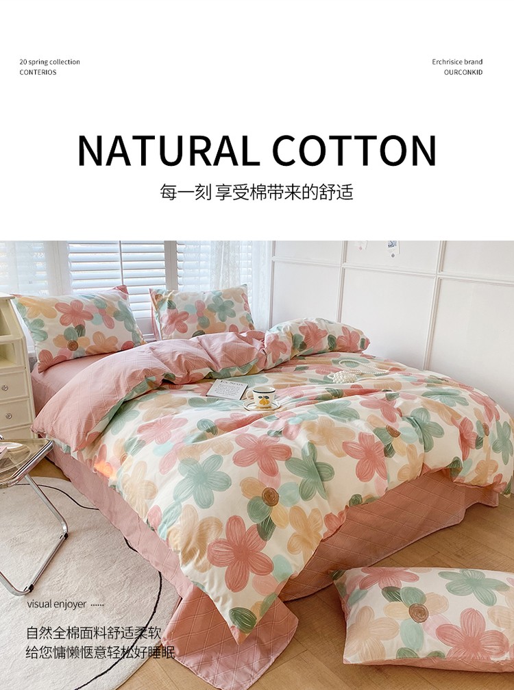 (总)优彩 2025新款全棉双层纱四件套,采花兔,彩蘑菇,初暖,粉小花,花栖,恋花小径,萝蔓,落山秋,南瓜派,清然,瑞莎,小熊派,紫葡萄,花栖-咖