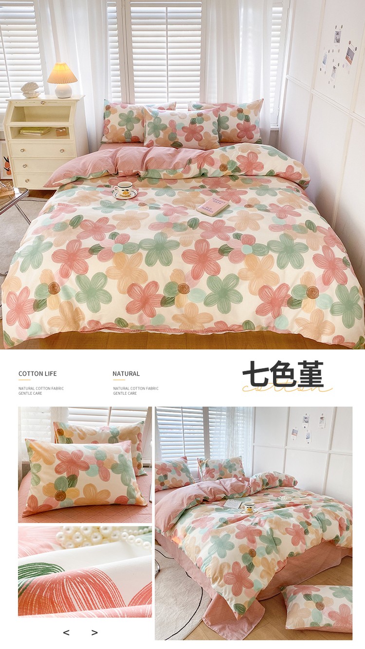 优彩 2022新款全棉时尚花卉系列四件套 七色堇