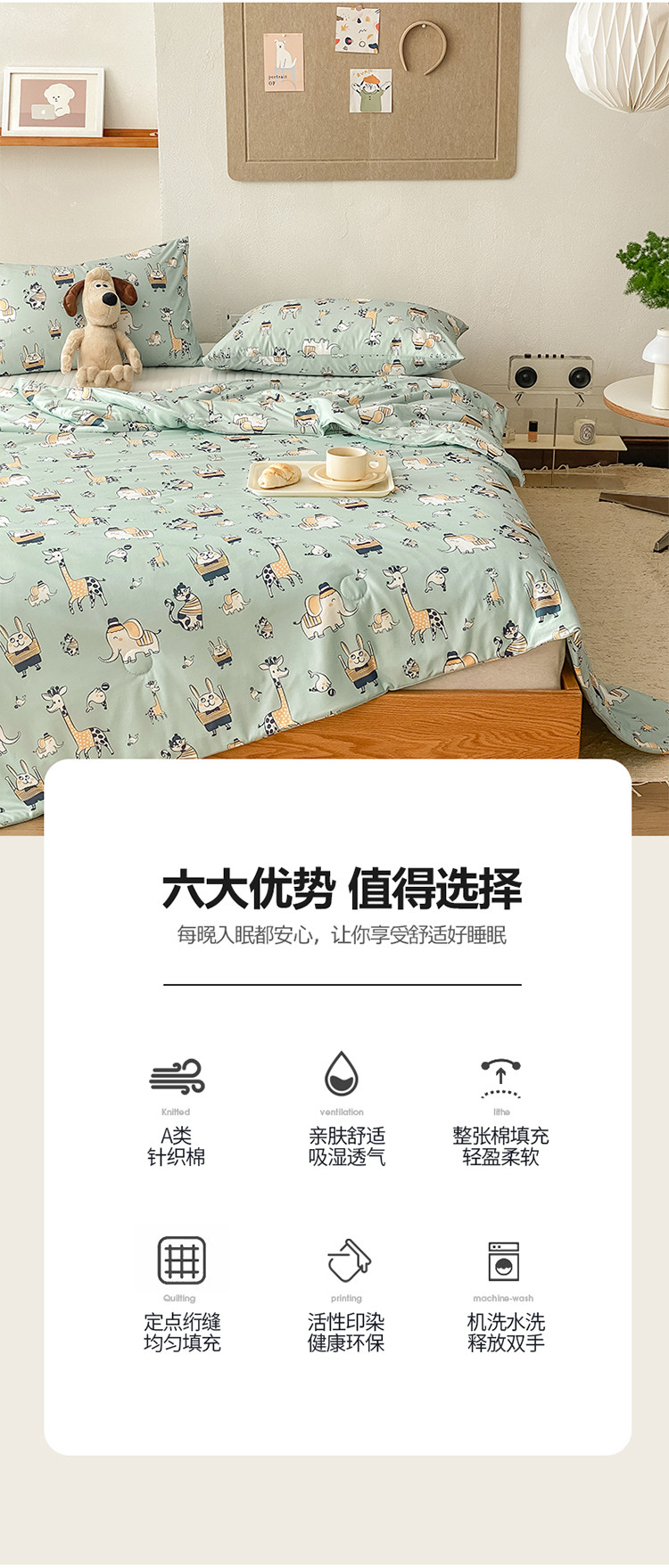 商品名称:寐眠 2022新款生态A类大豆针织棉夏被 动物乐园