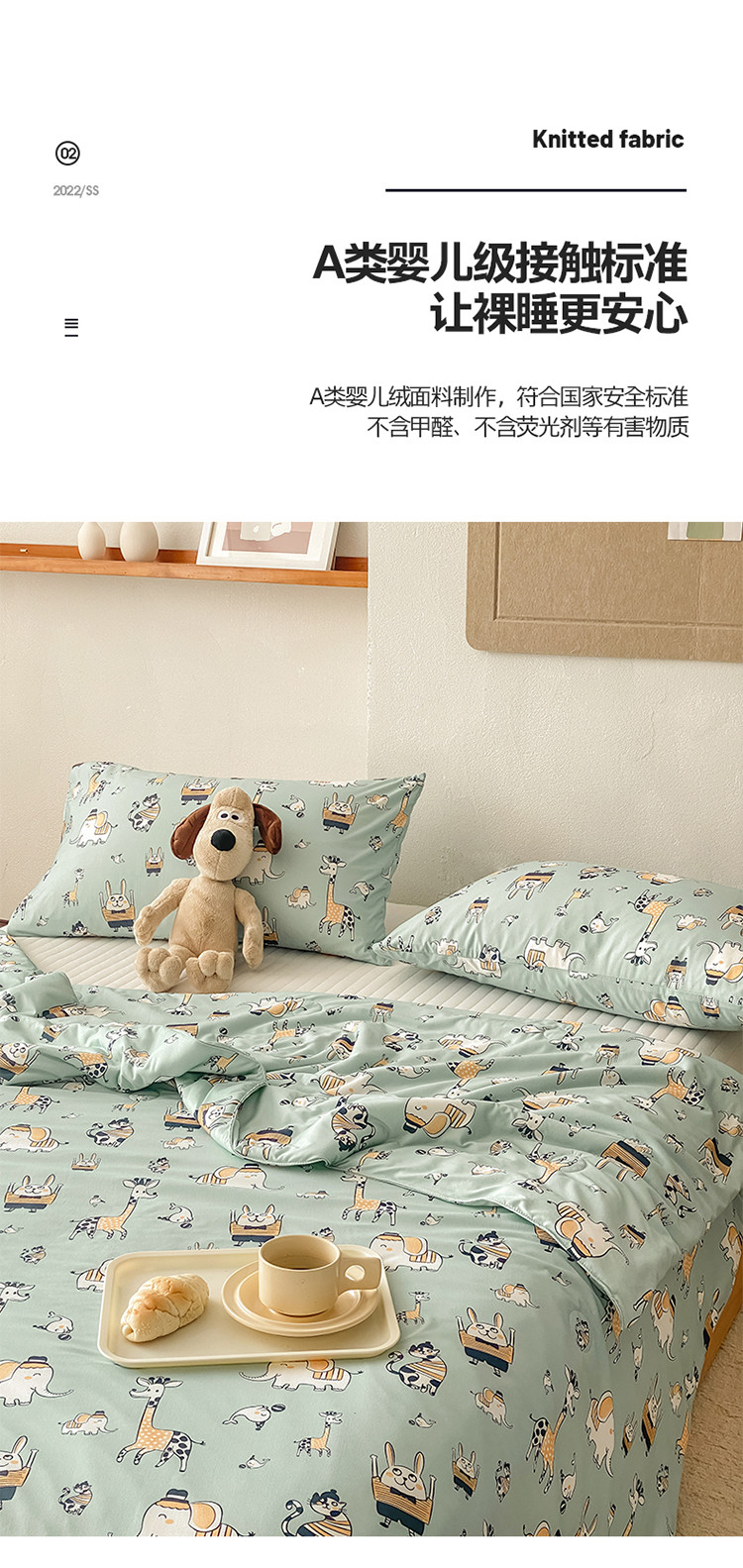 寐眠 2022新款生态A类大豆针织棉夏被 动物乐园