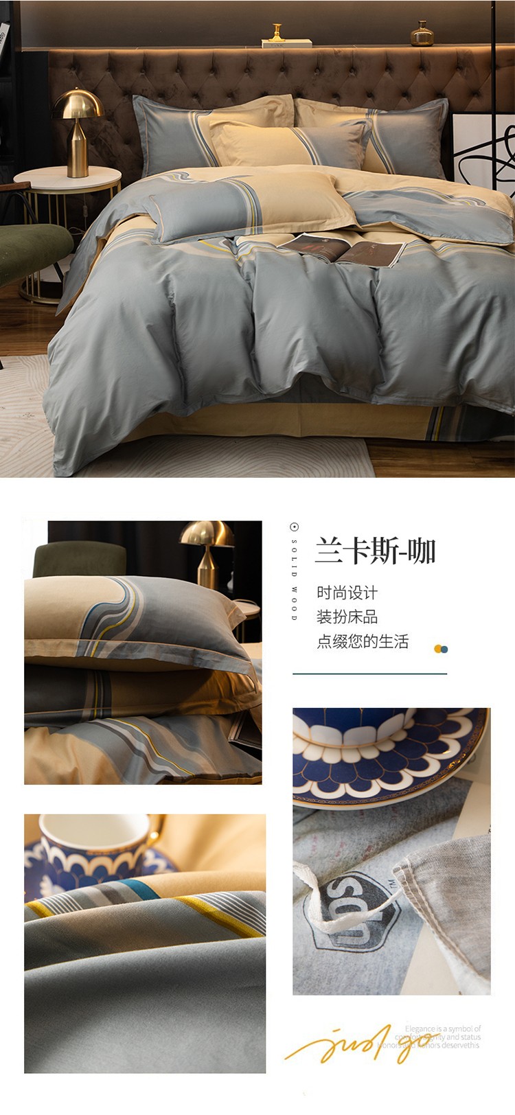 商品名称:雲归梦 2022新款全棉大版四件套 格子花型 兰卡斯-咖