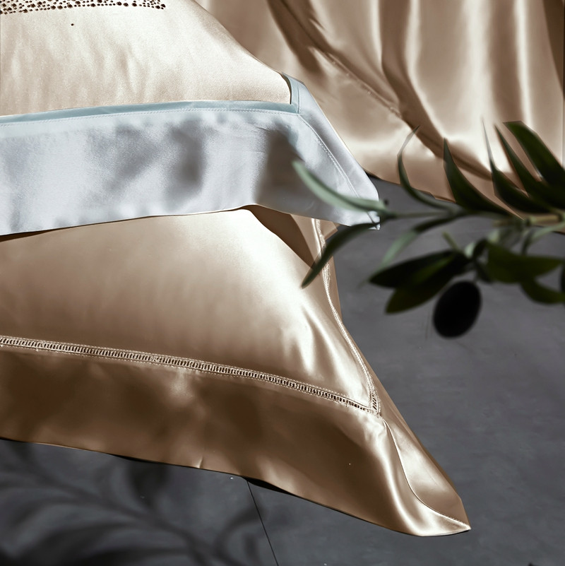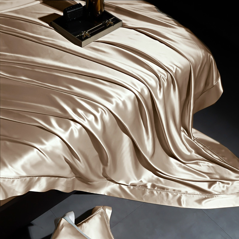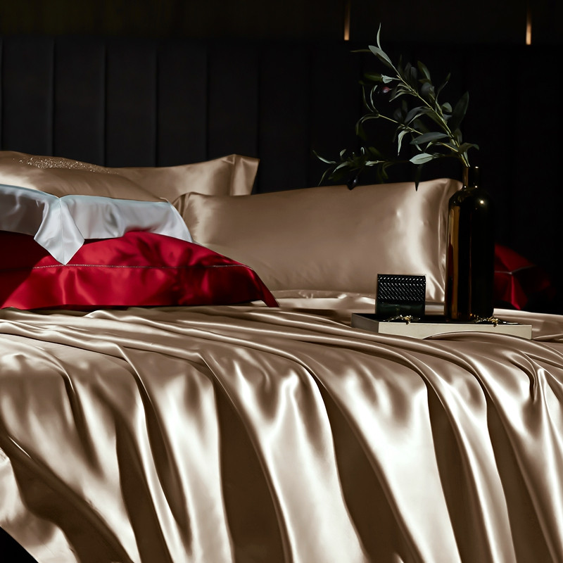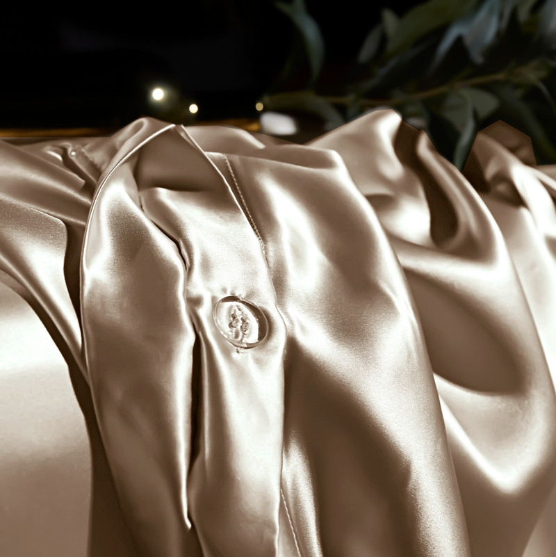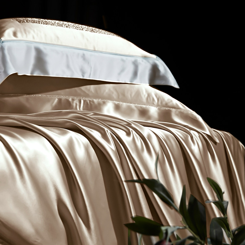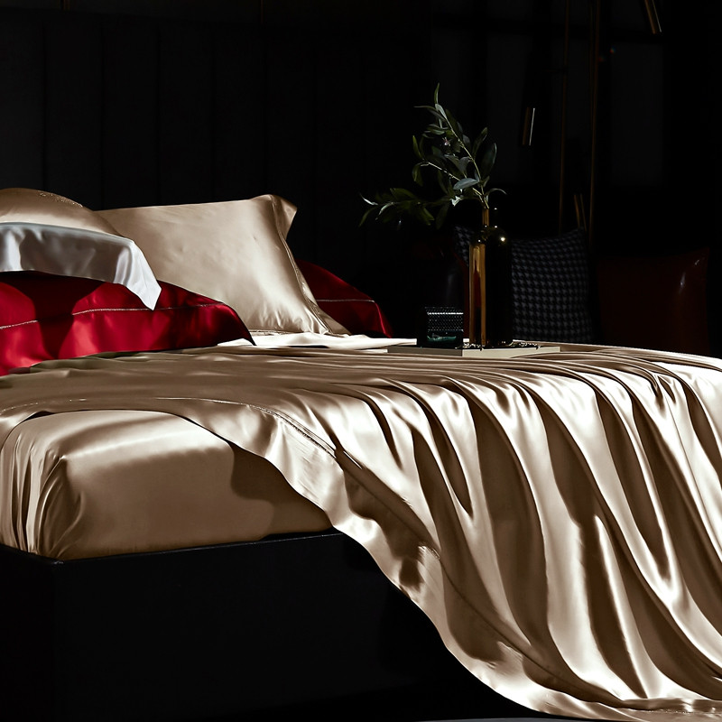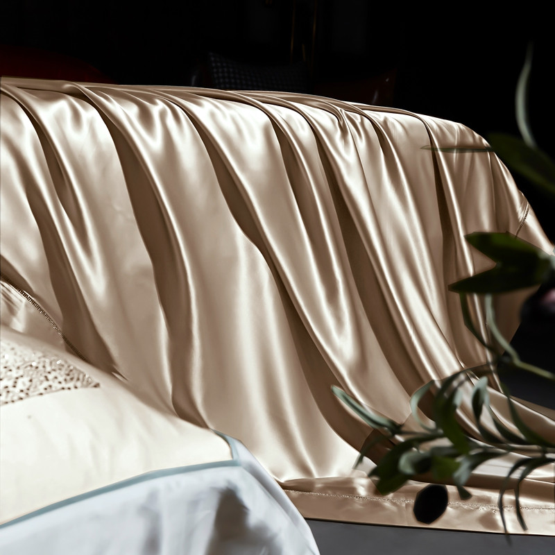 晋瑞红顶鹅绒馆新款纯色全真丝工艺款四件套 香槟金
