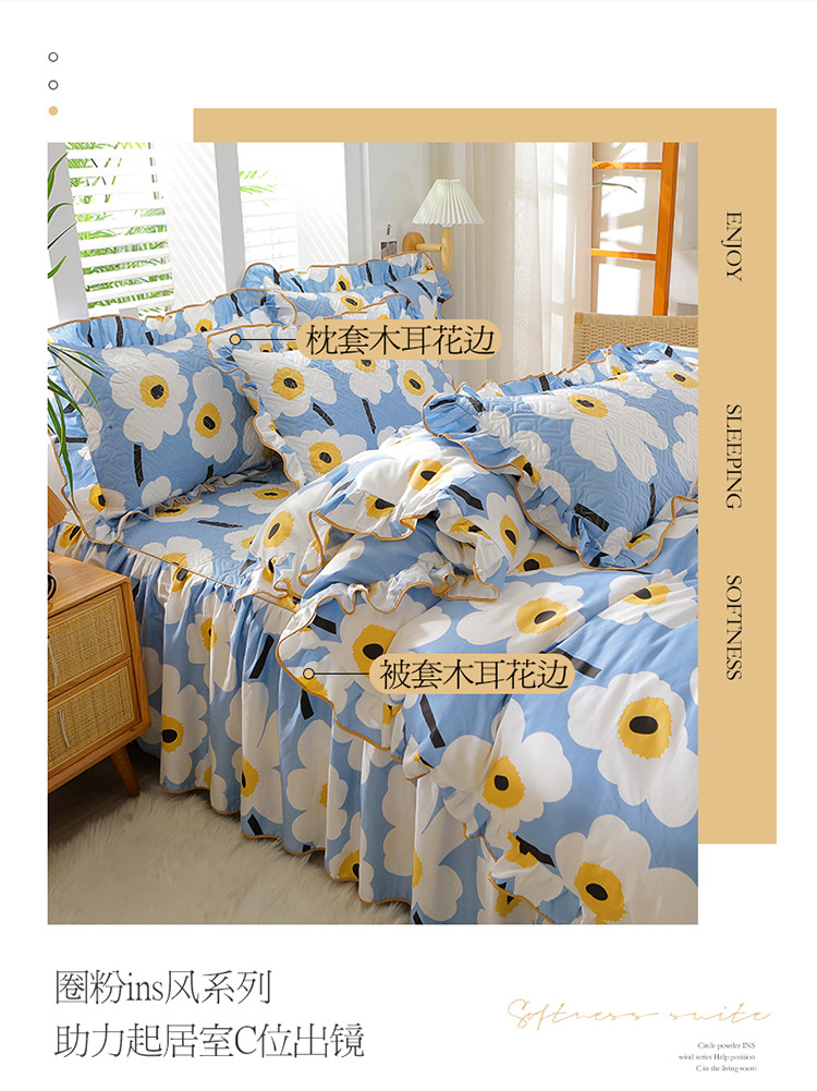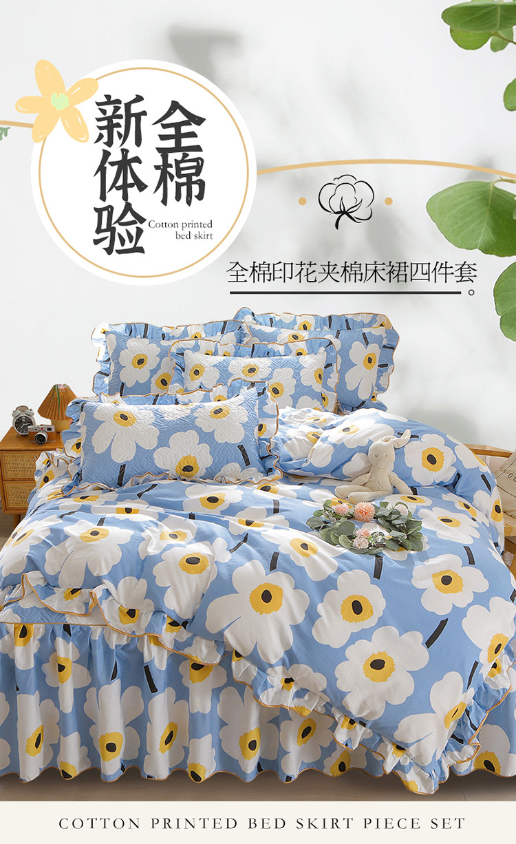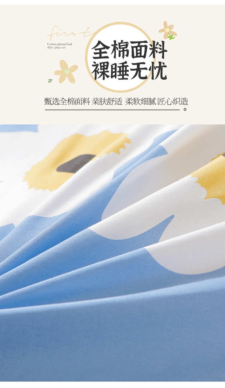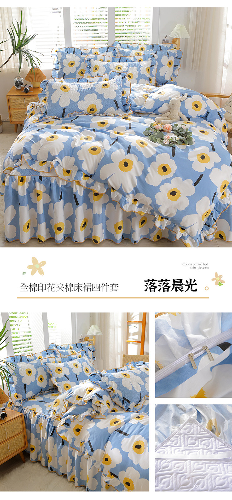 当前位置: 91家纺网 > 商品网购 > 床品套件 > 四件套 > 全棉普通四件套 > 宜凡家纺 2023新款全棉印花花边床裙四件套 落落晨光