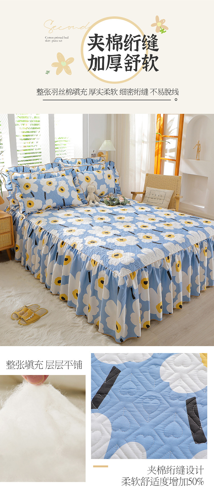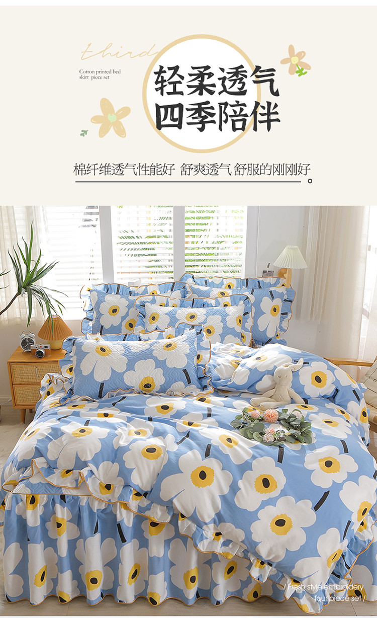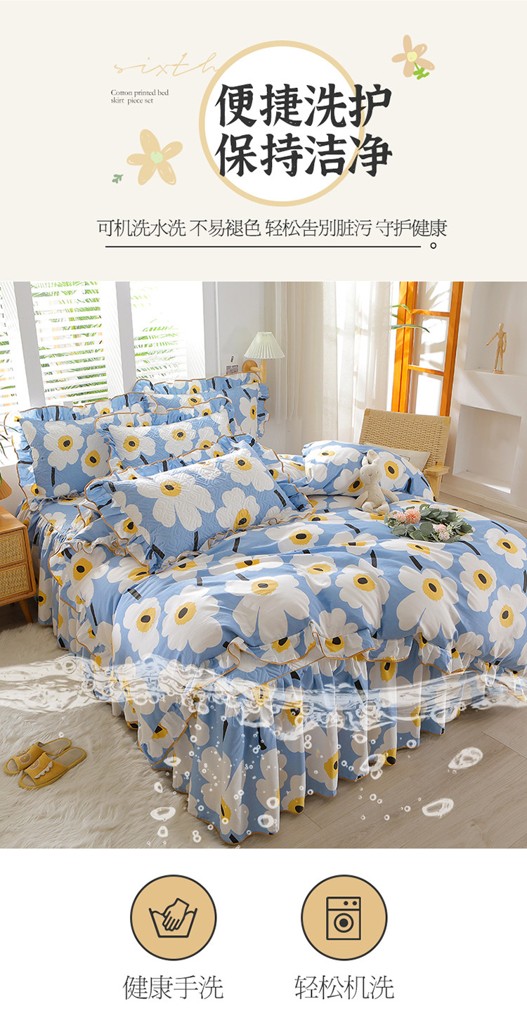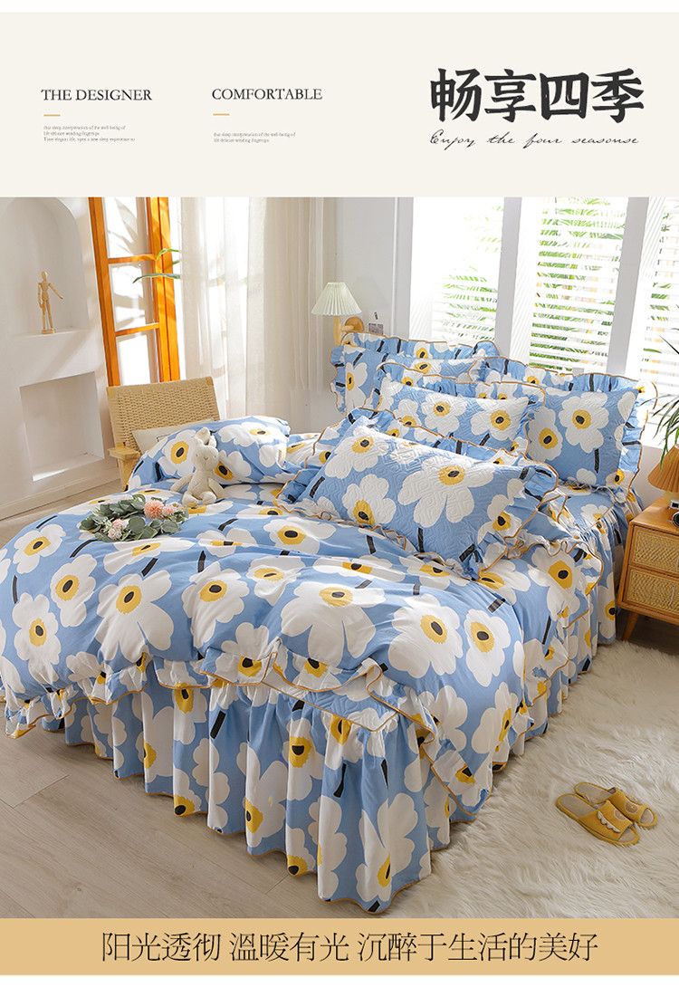 当前位置: 91家纺网 > 商品网购 > 床品套件 > 四件套 > 全棉普通四件套 > 宜凡家纺 2023新款全棉印花花边床裙四件套 落落晨光