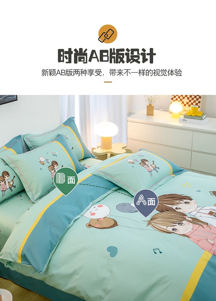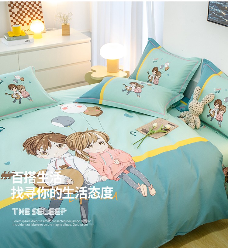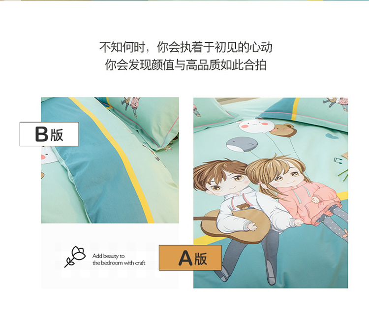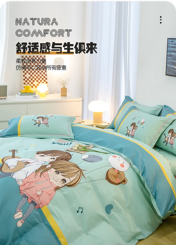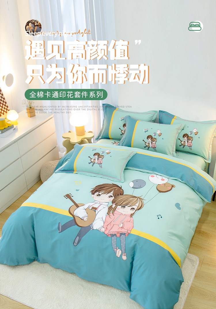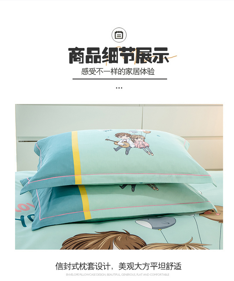 商品名称:雲归梦 2022新款全棉大版四件套 卡通花型 两小无猜-绿