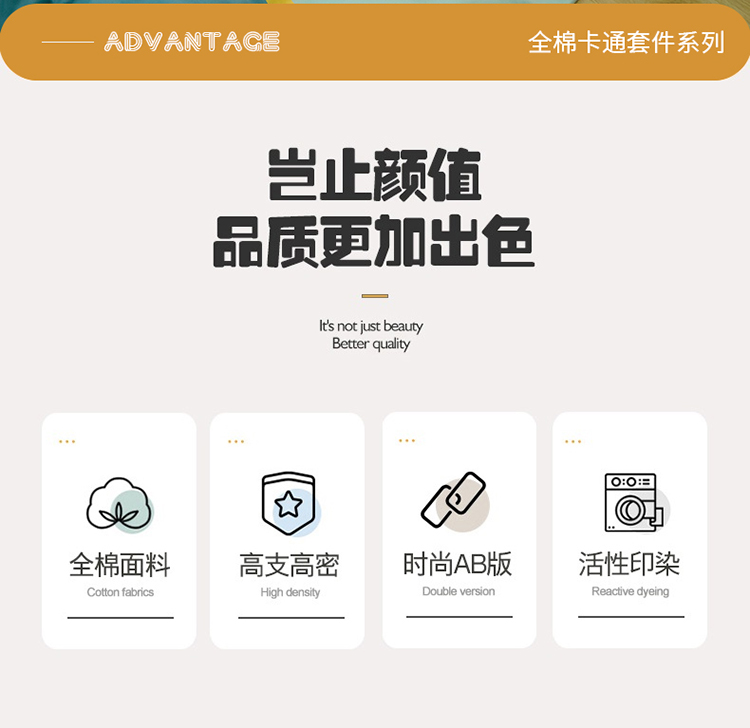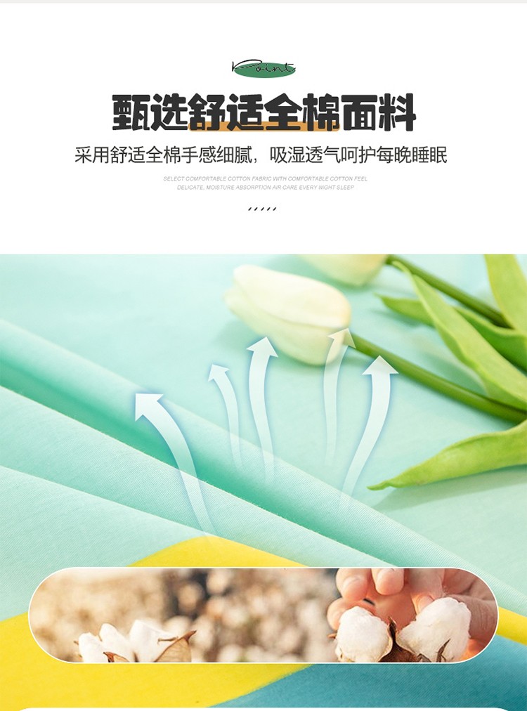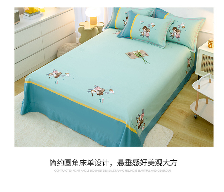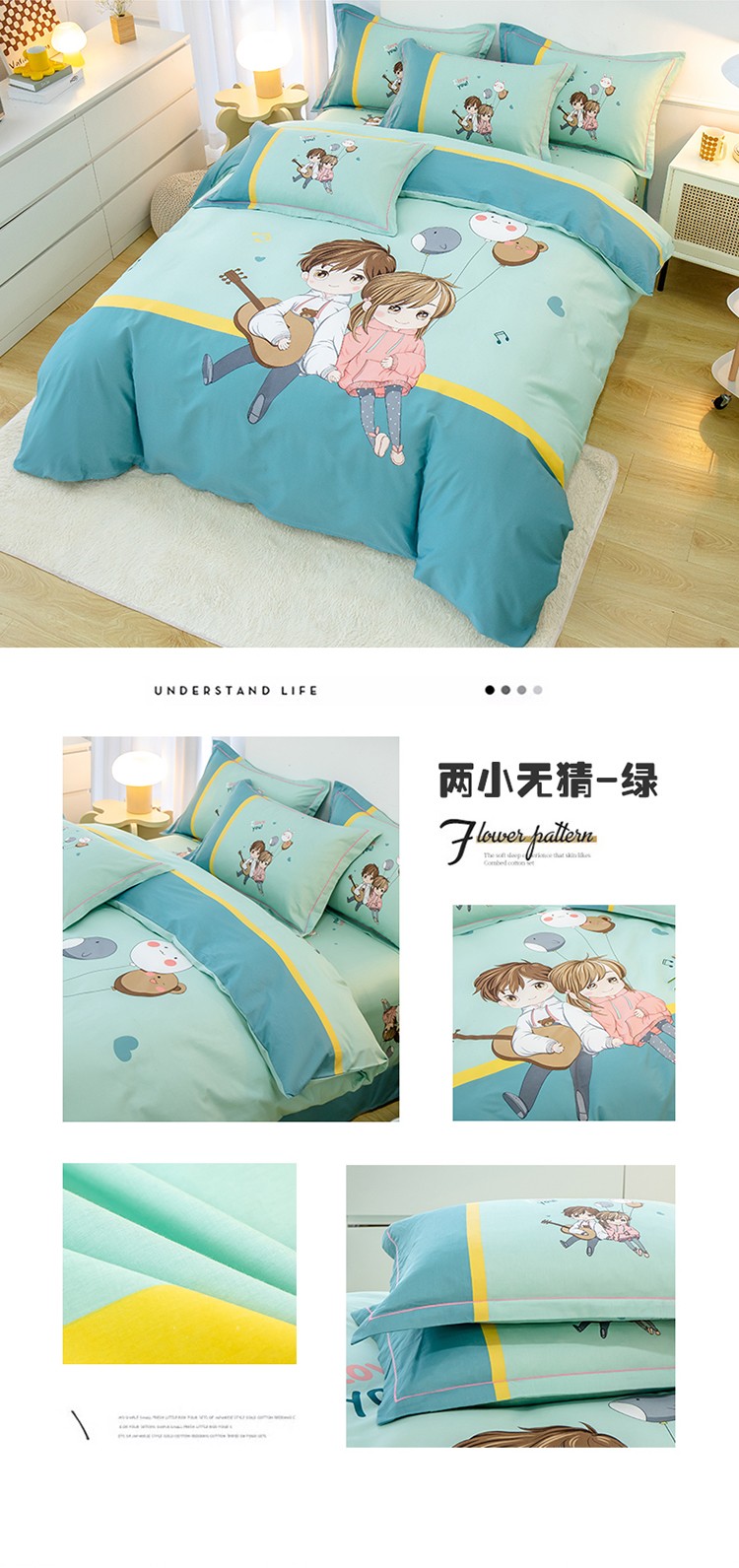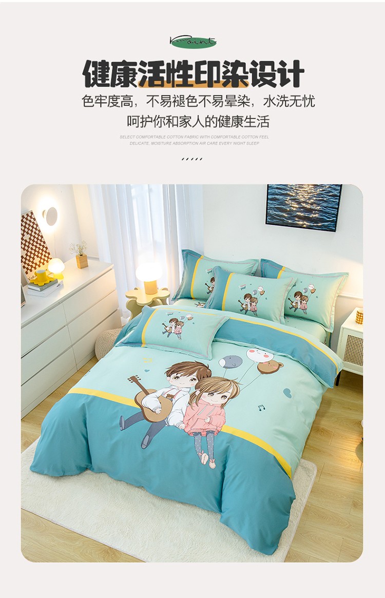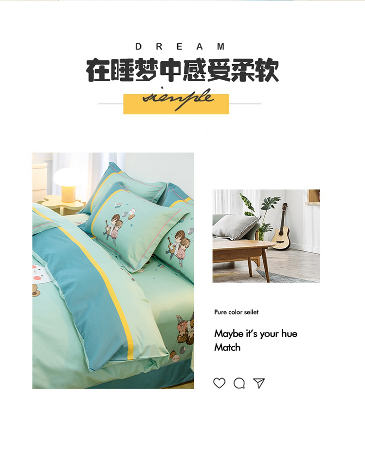 商品名称:雲归梦 2022新款全棉大版四件套 卡通花型 两小无猜-绿