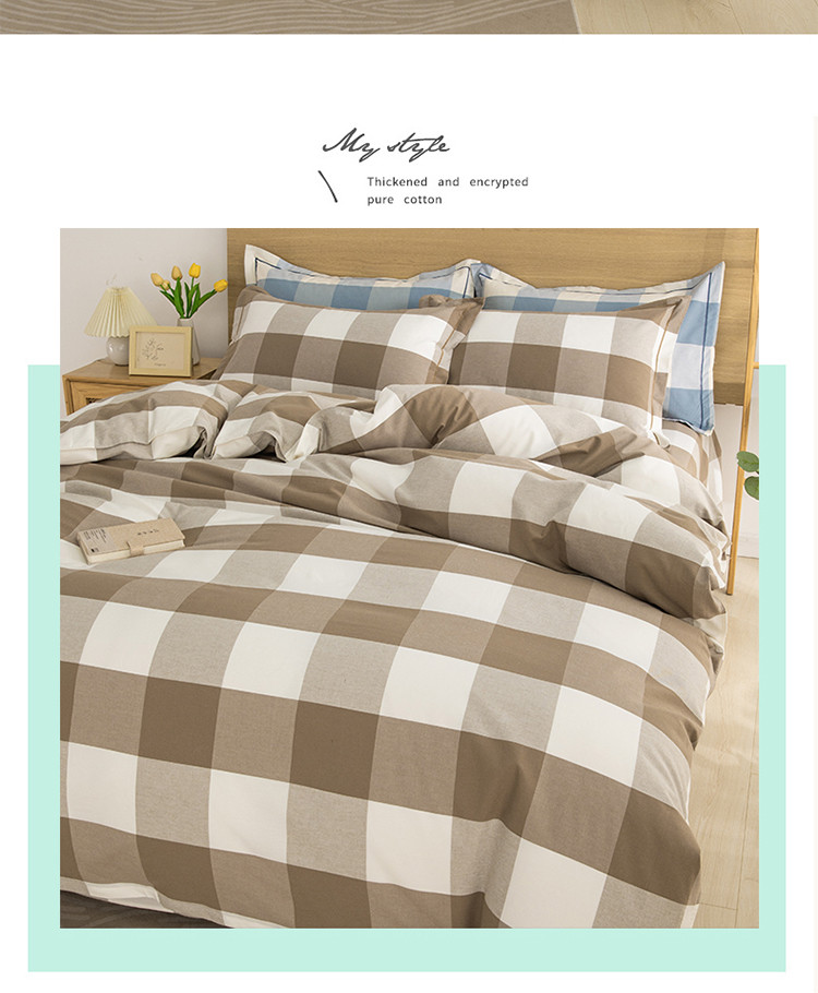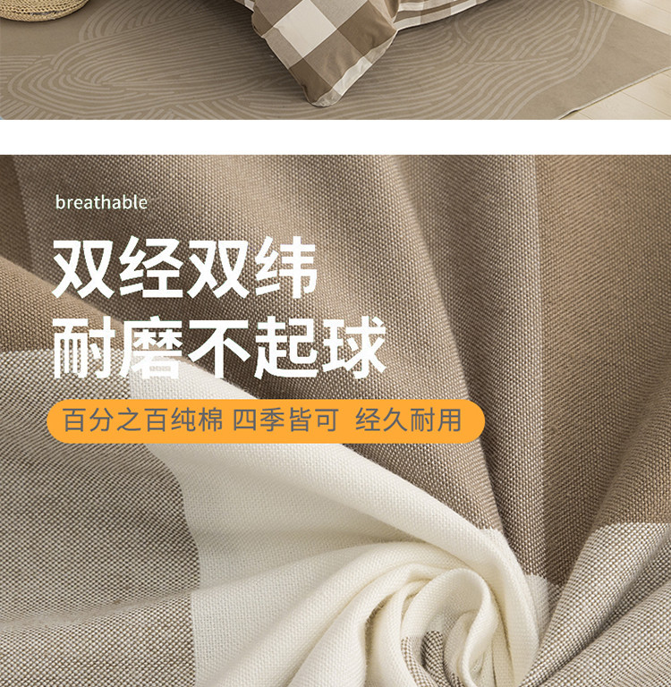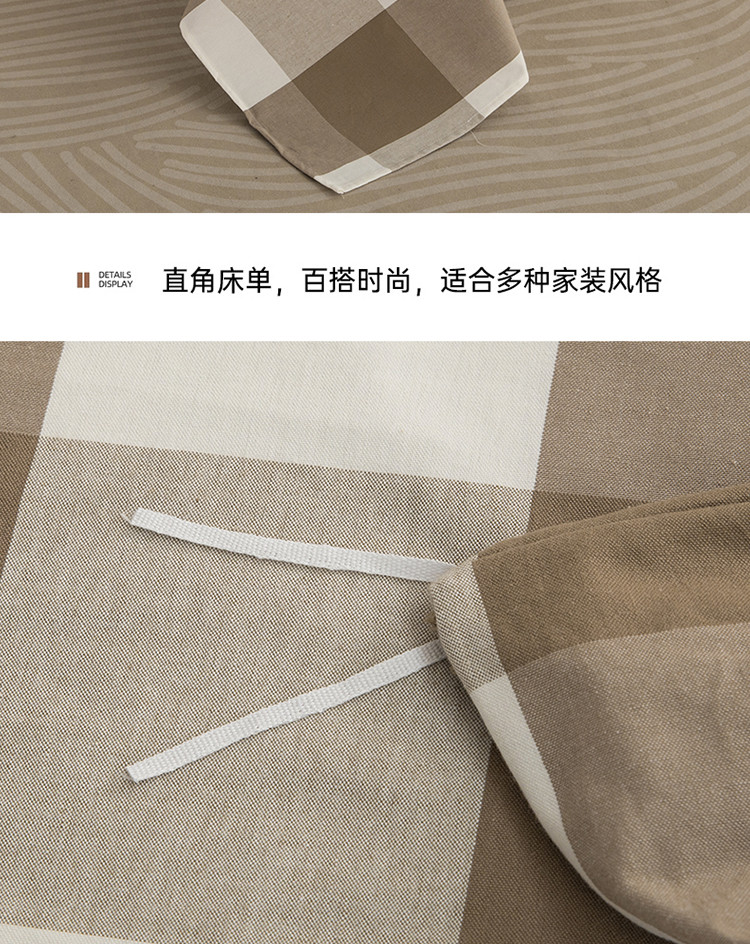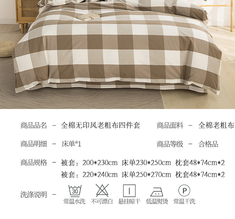商品名称:杜先生 2023新款全棉无印风老粗布四件套直播爆款 无印风格子-咖