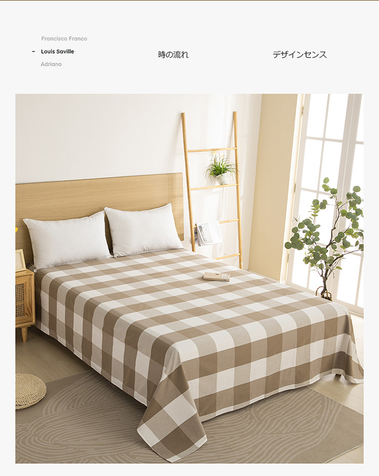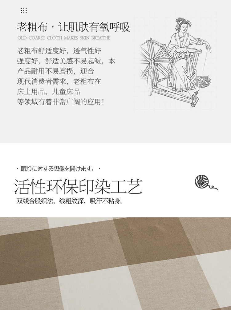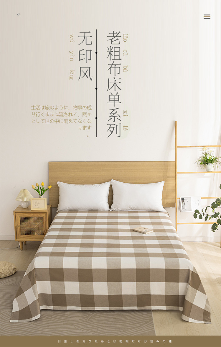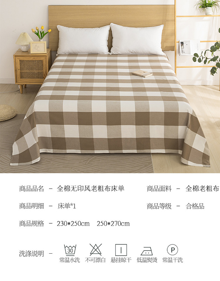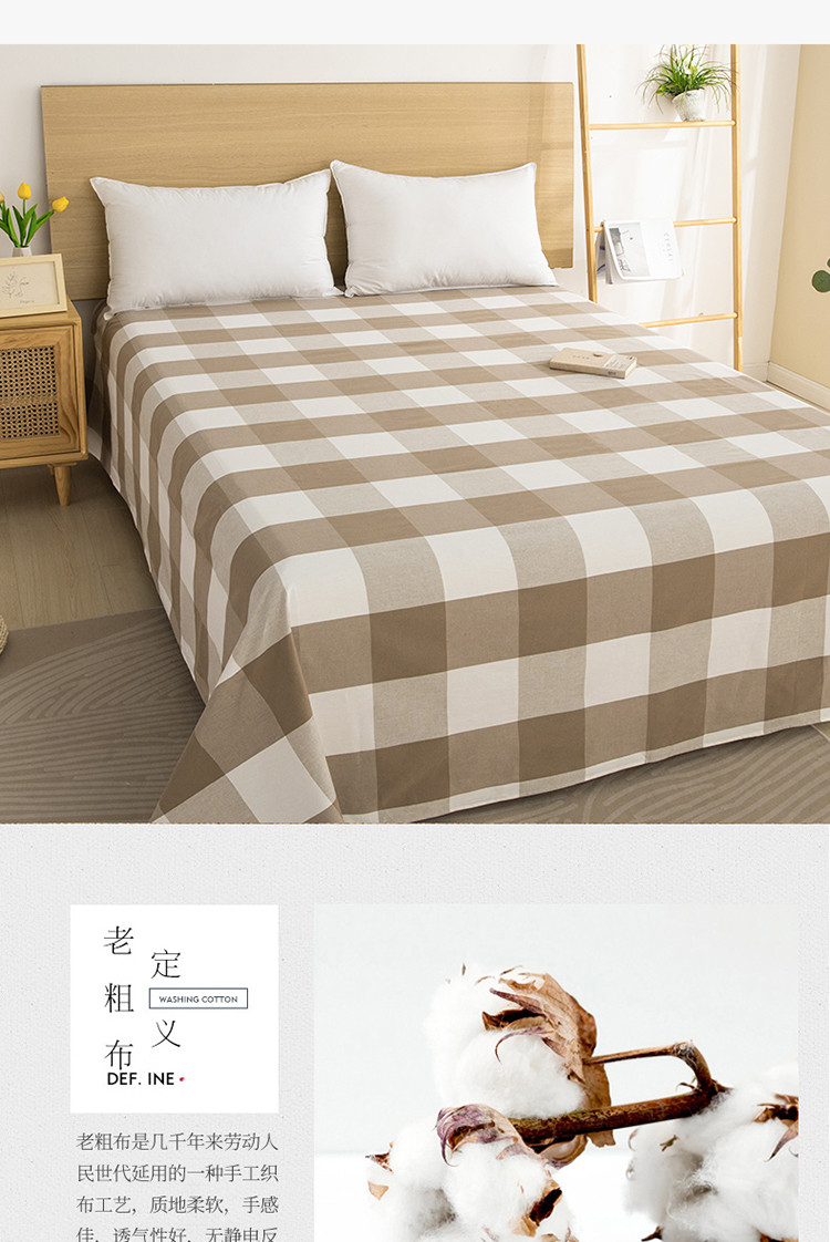 商品名称:杜先生 2023新款全棉无印风老粗布单床单直播爆款 无印风格子-咖