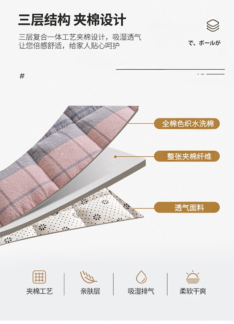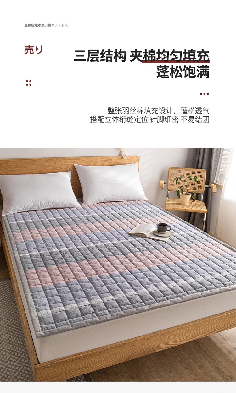 商品名称:东宇 2022新款A类全棉色织水洗棉夹棉床垫 马丁粉