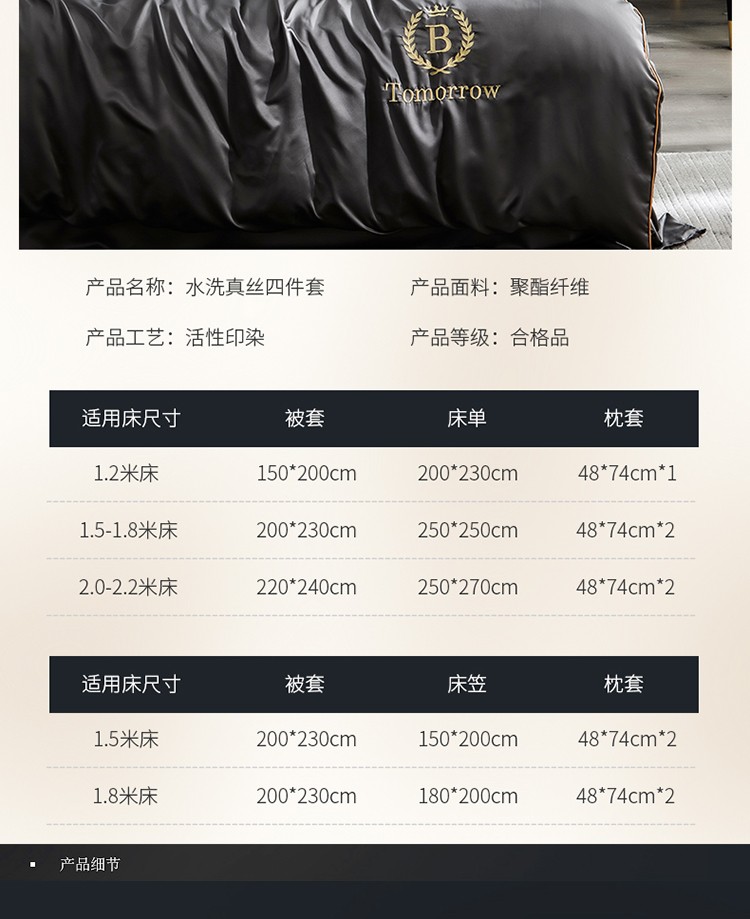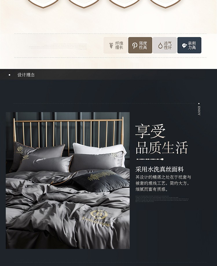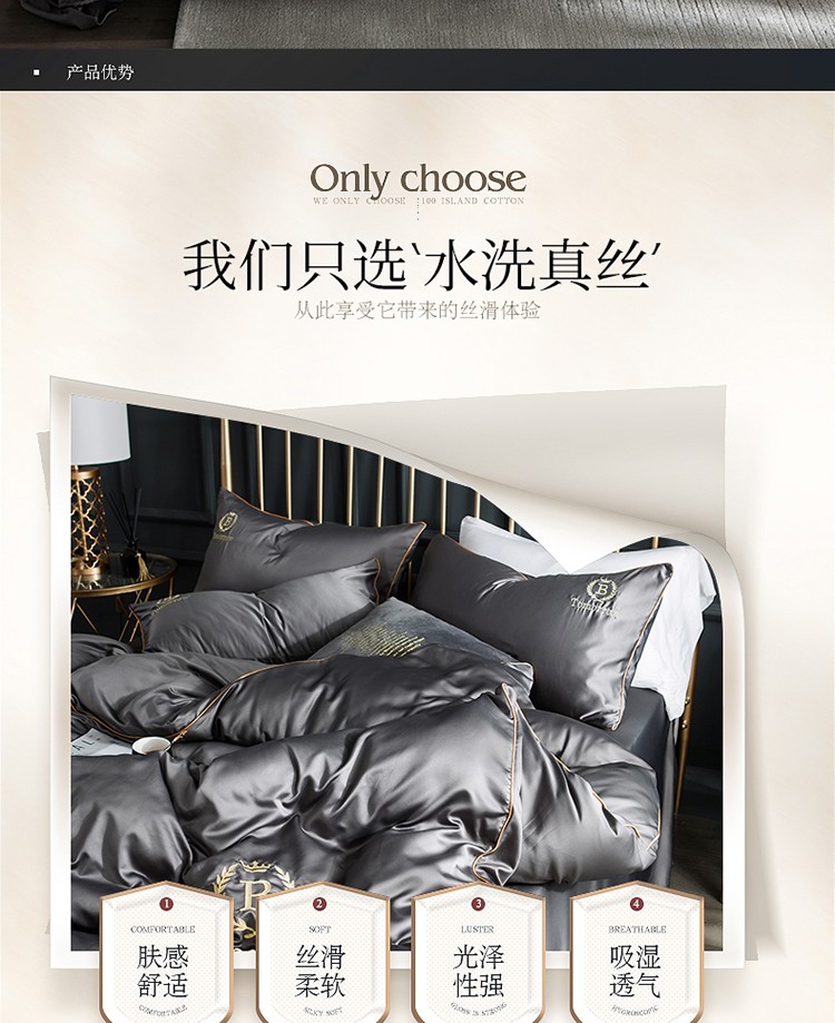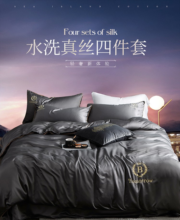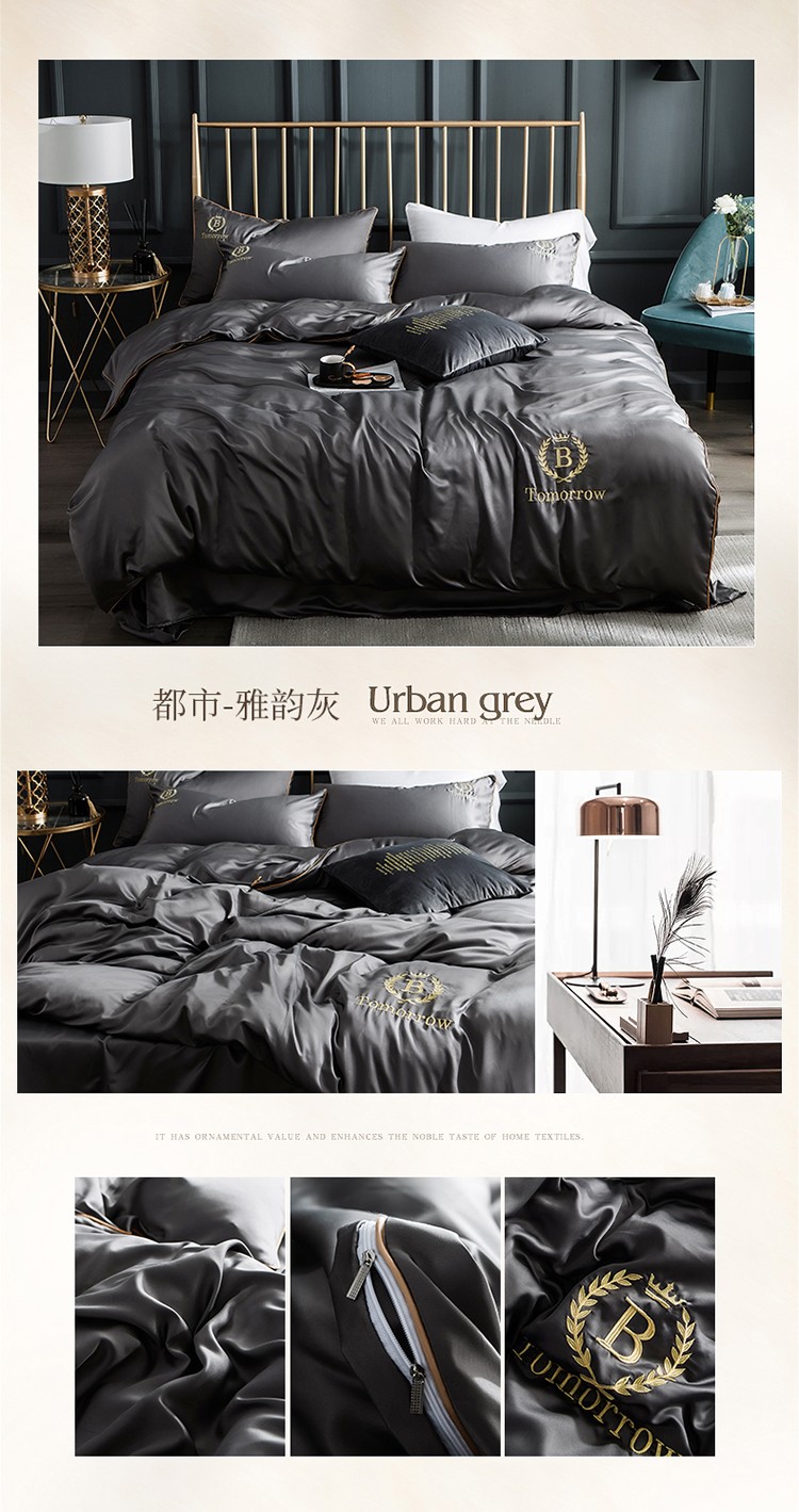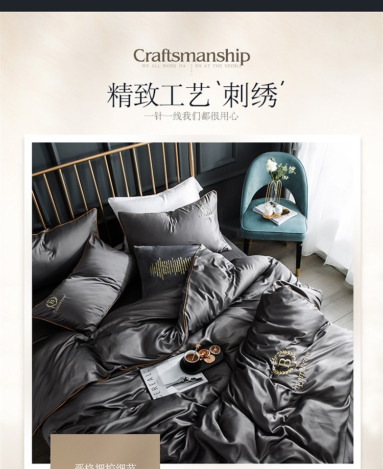 商品名称:琪格格 2022新款水洗真丝刺绣四件套 都市-雅韵灰