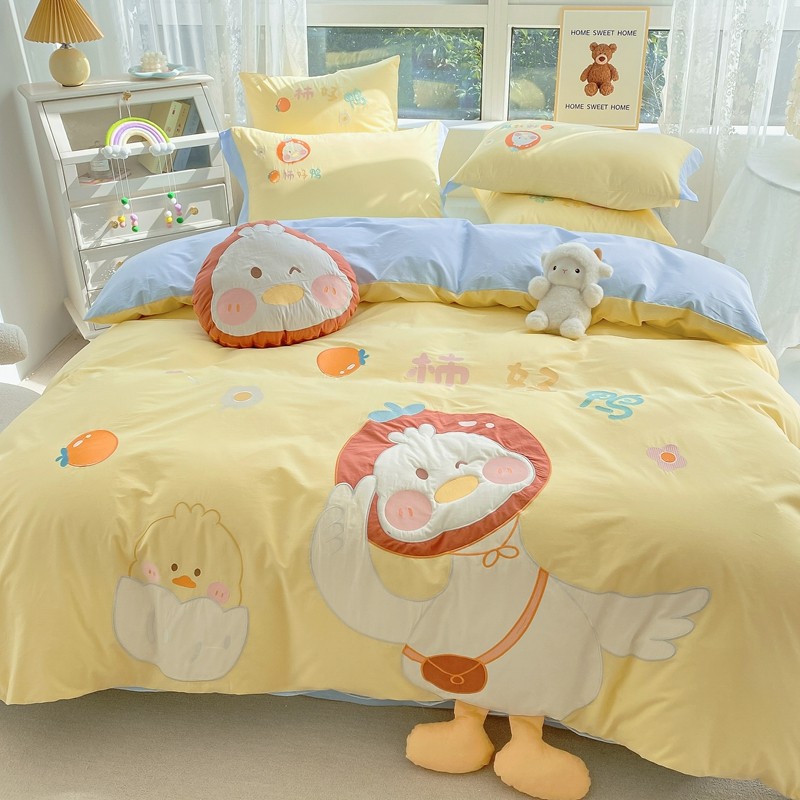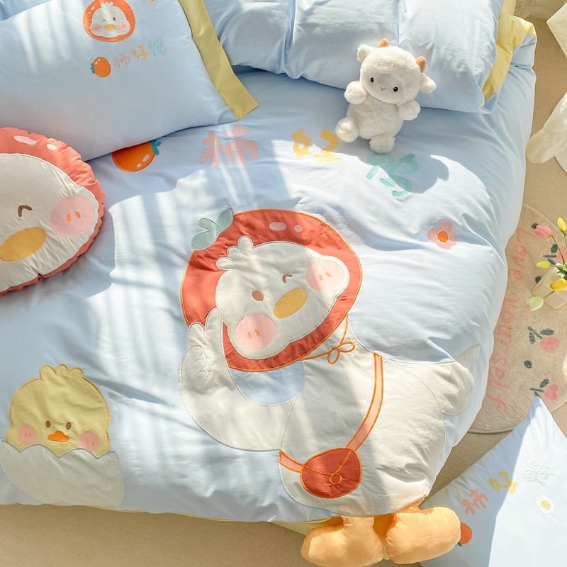 (总)沐慕 2022新款全棉工艺款四件套-柿柿好鸭