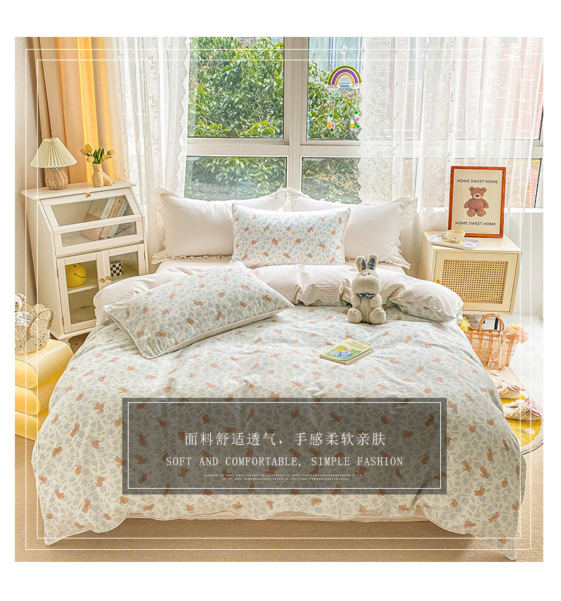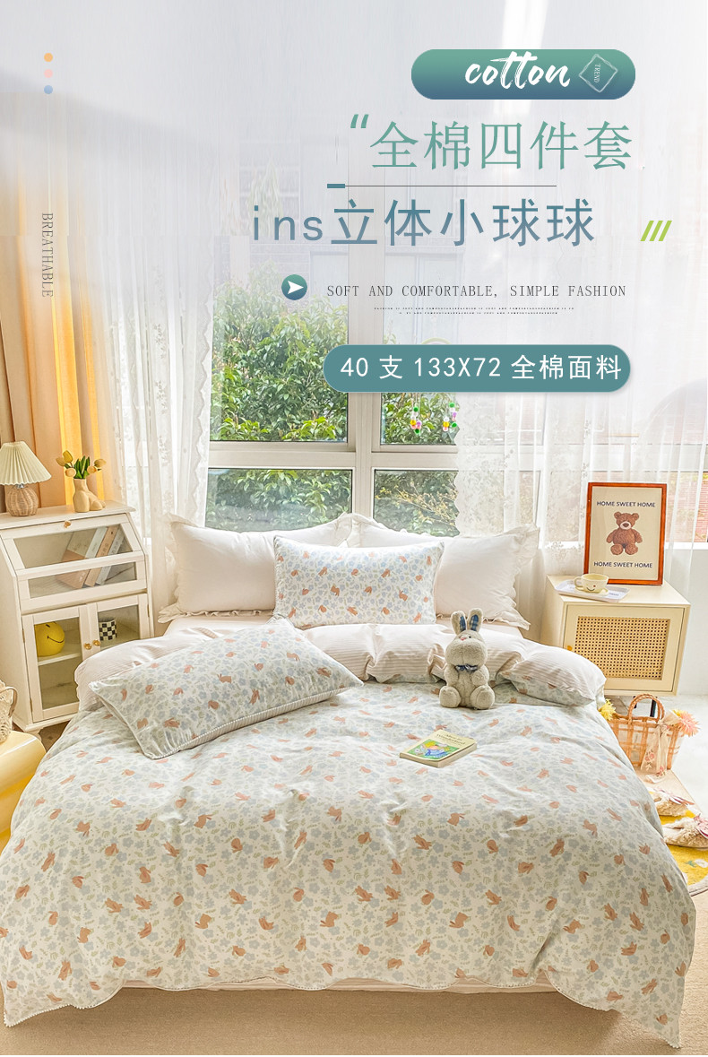 商品名称:捌月 2024新款全棉ins小球球款四件套 小玉兔