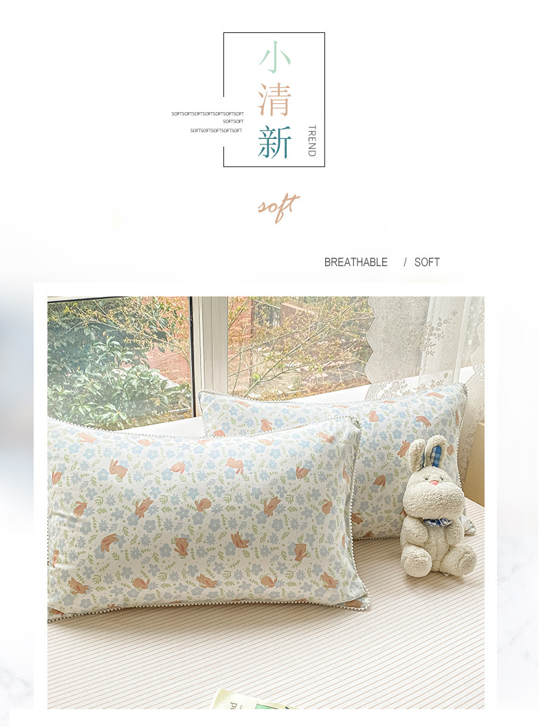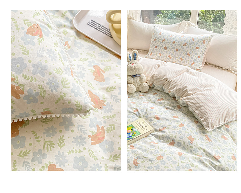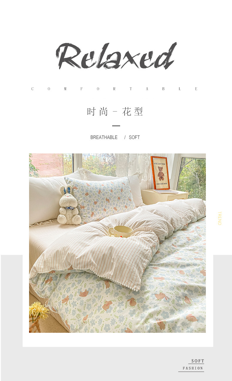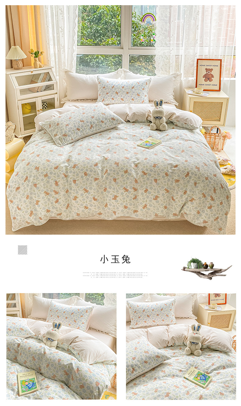 捌月 2024新款全棉ins小球球款四件套 小玉兔