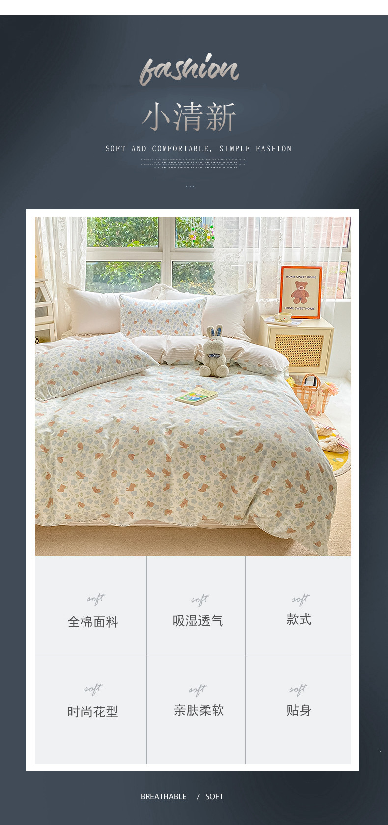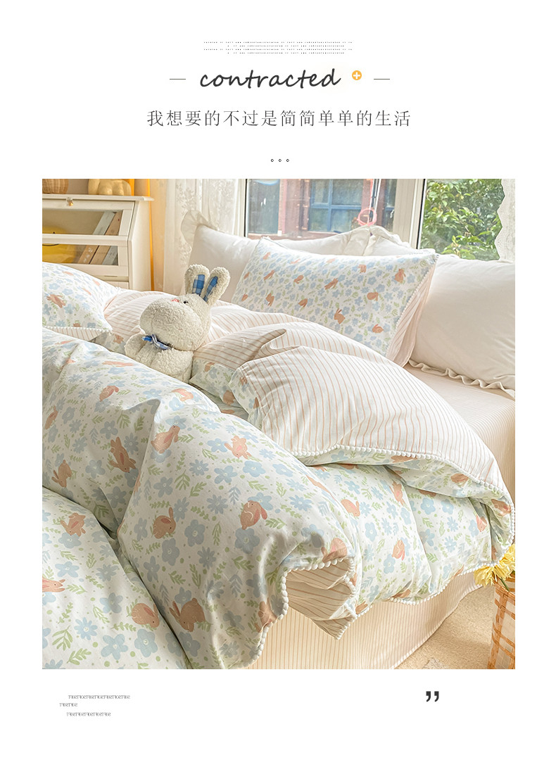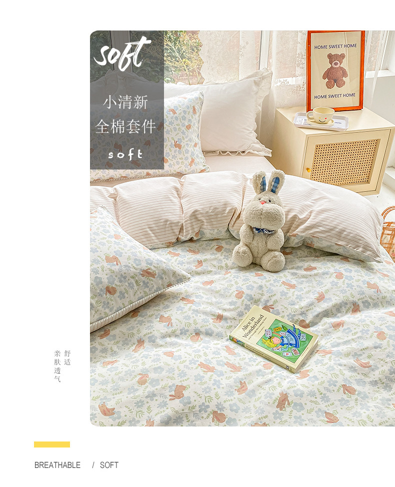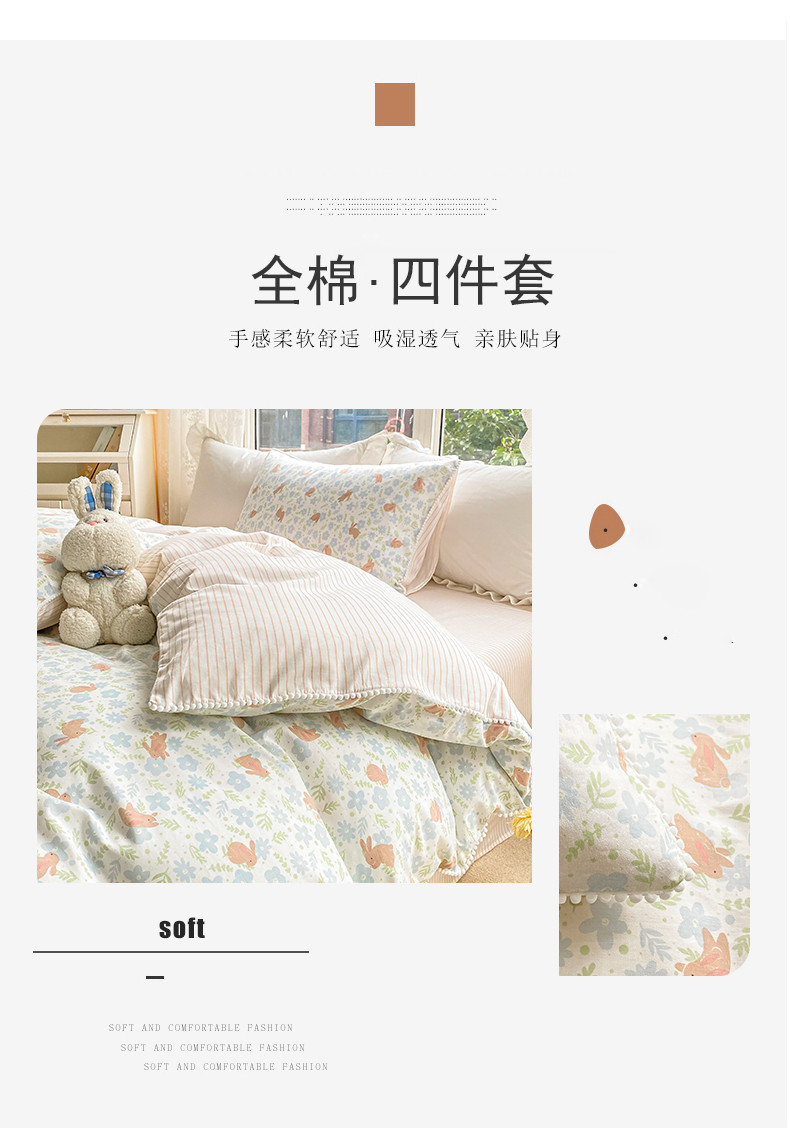 (总)捌月 2023新款13372全棉四件套竖纹印花系列,草莓园,兔小姐,小兰花,小甜心