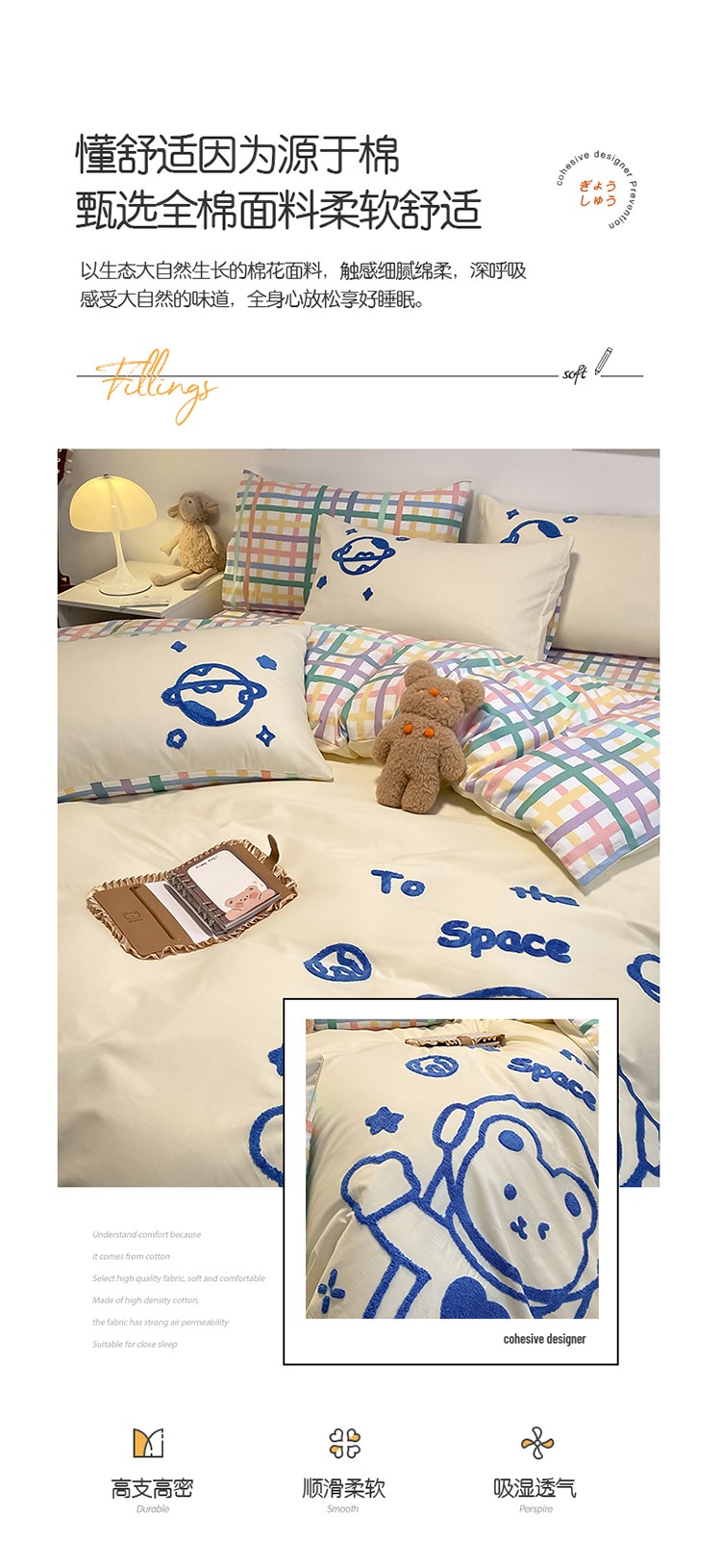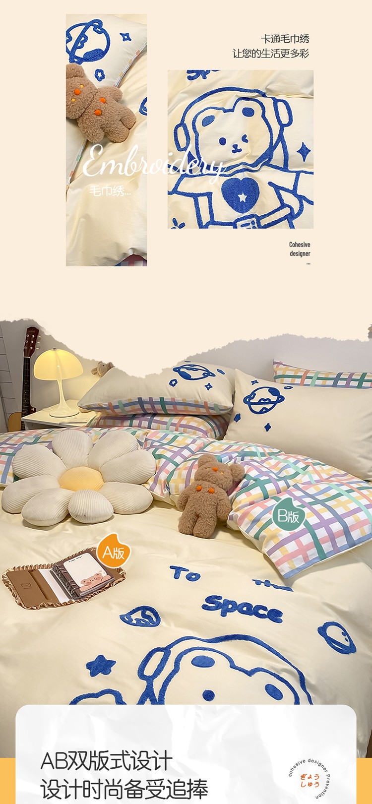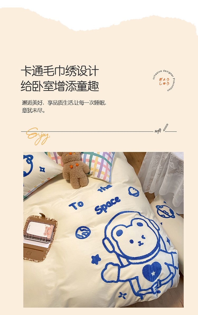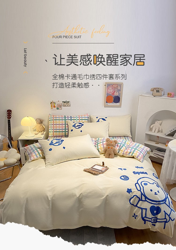 当前位置: 91家纺网 > 商品网购 > 床品套件 > 四件套 > 全棉普通四件套 > (总)澳梵 2022新款全棉大版卡通毛巾绣绣花四件套