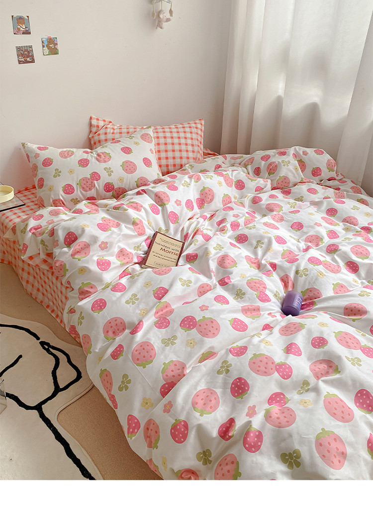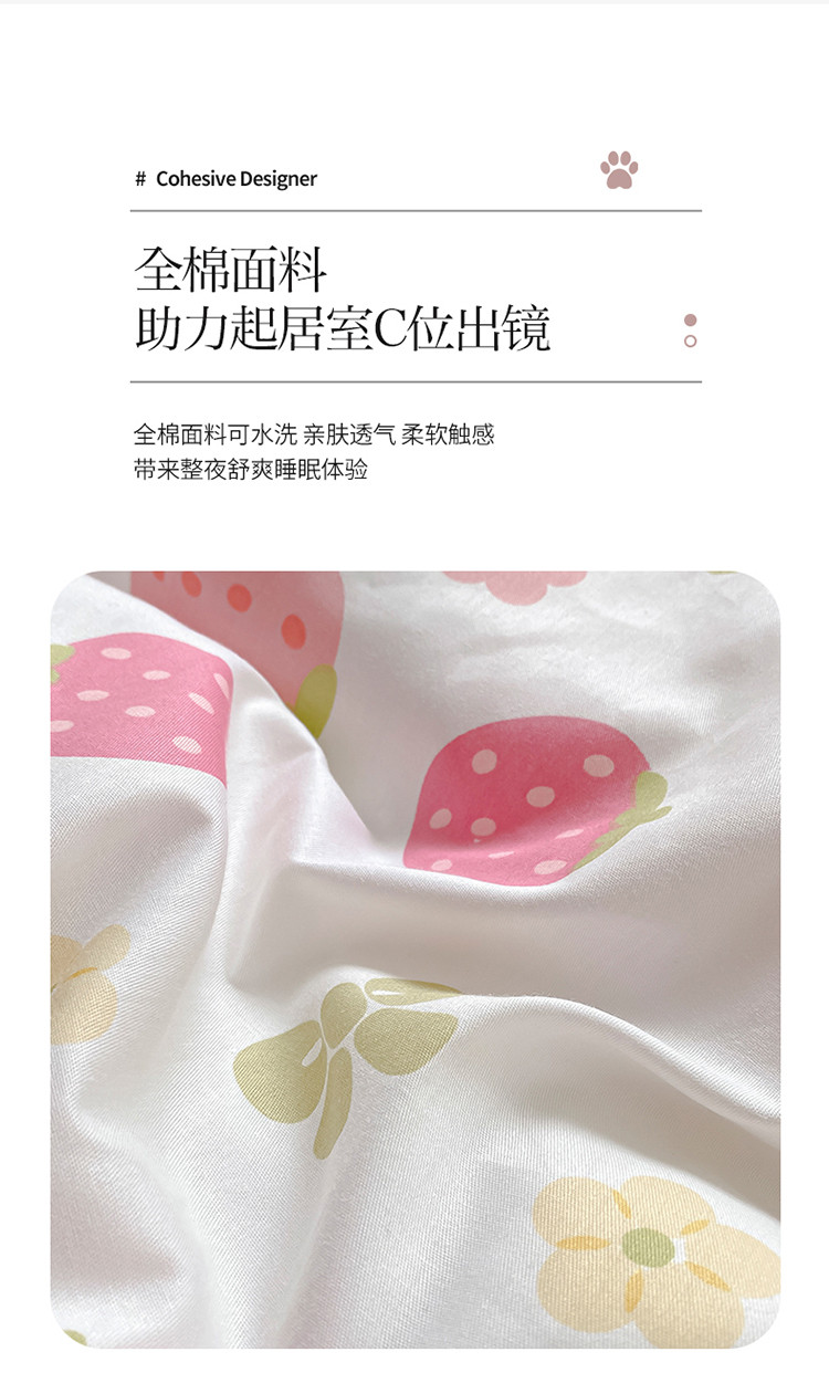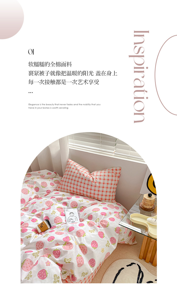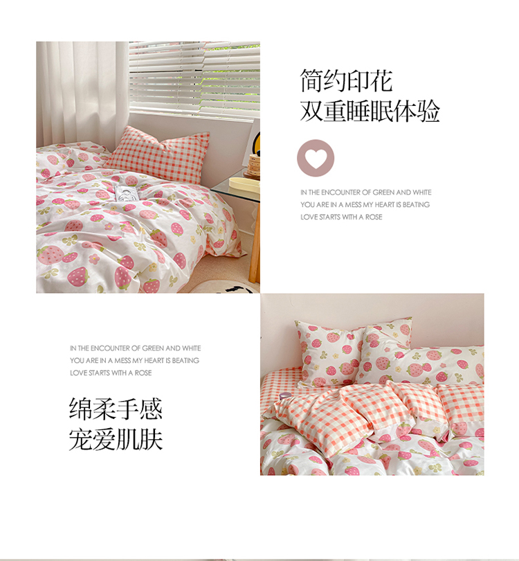 商品名称:雅居纺 2022新款全棉13070印花小清新四件套 粉粉的小草莓