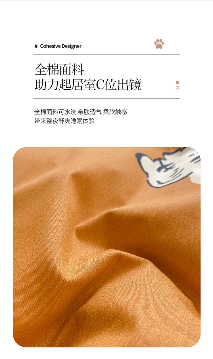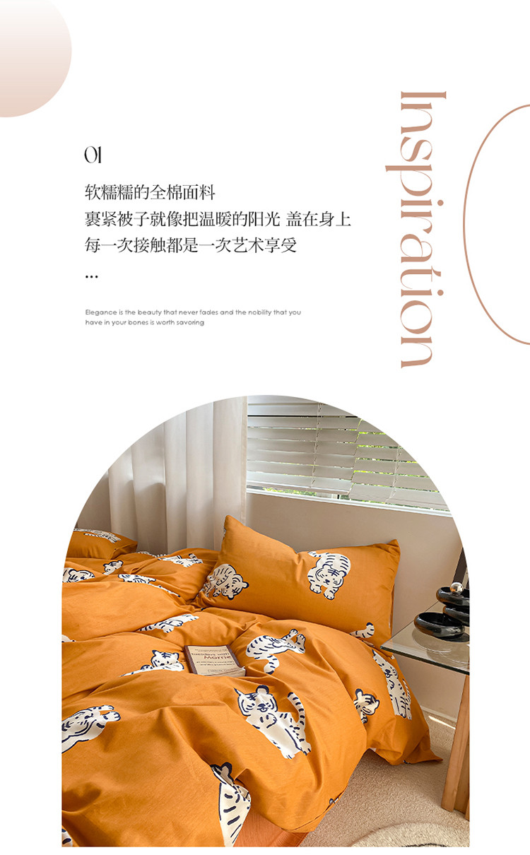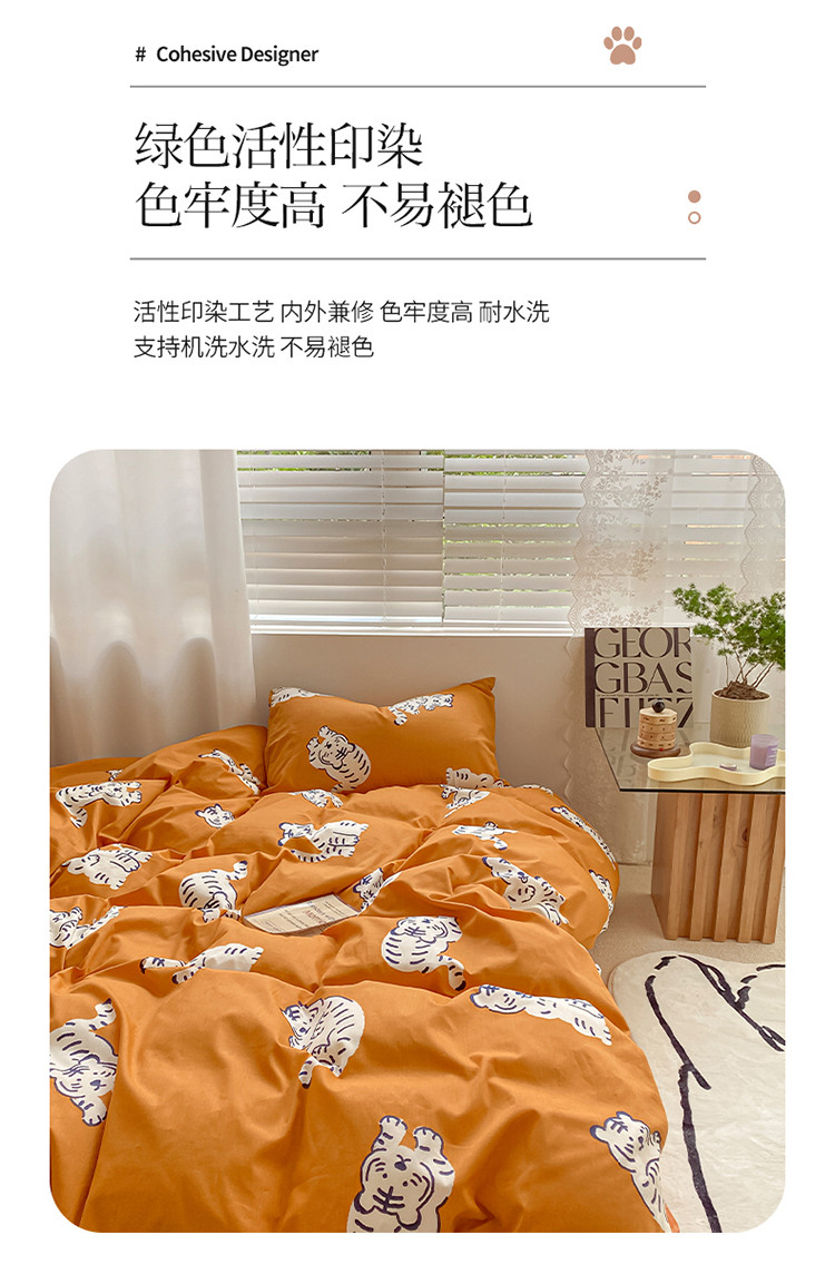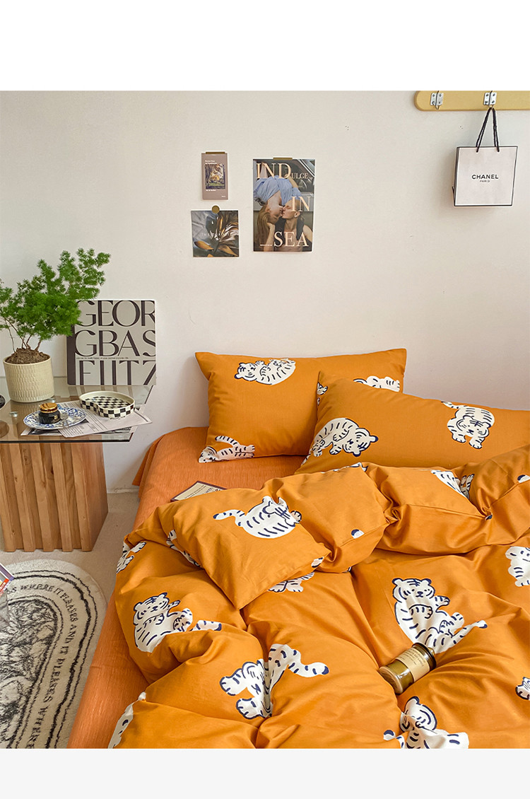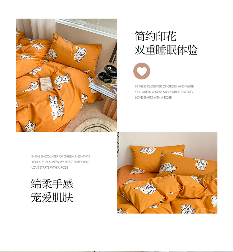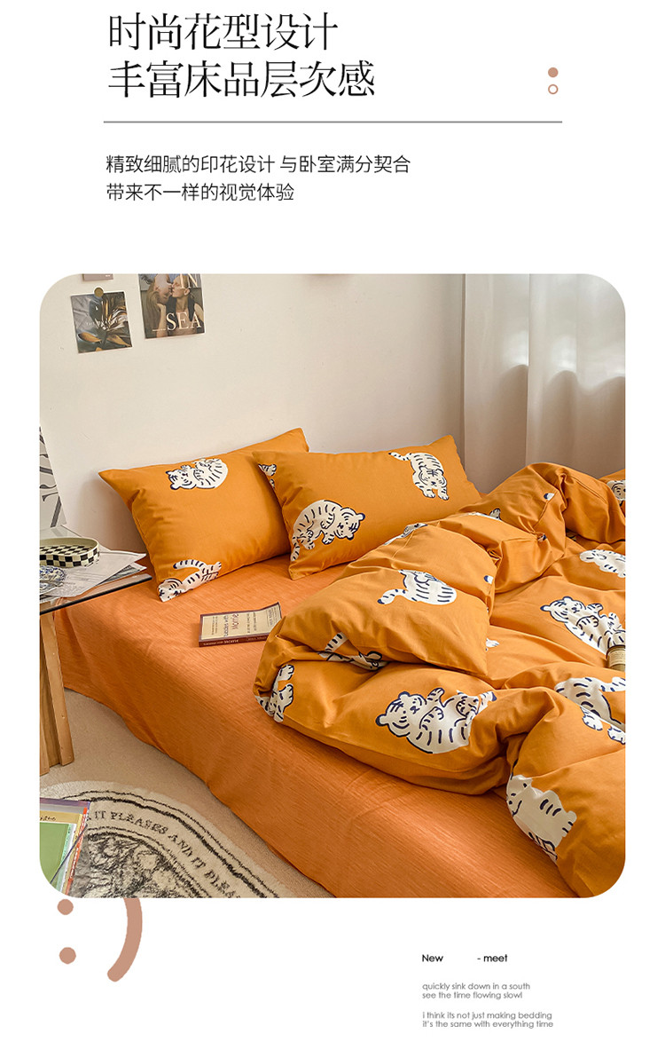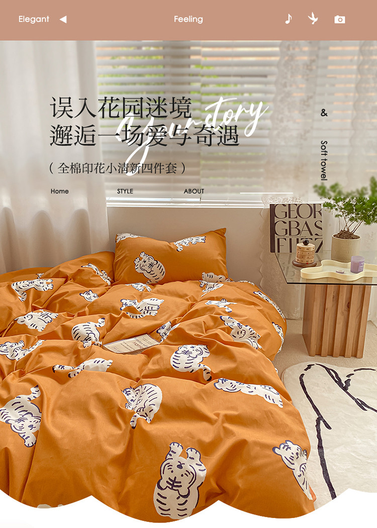 商品名称:雅居纺 2022新款全棉13070印花小清新四件套 小虎虎橘