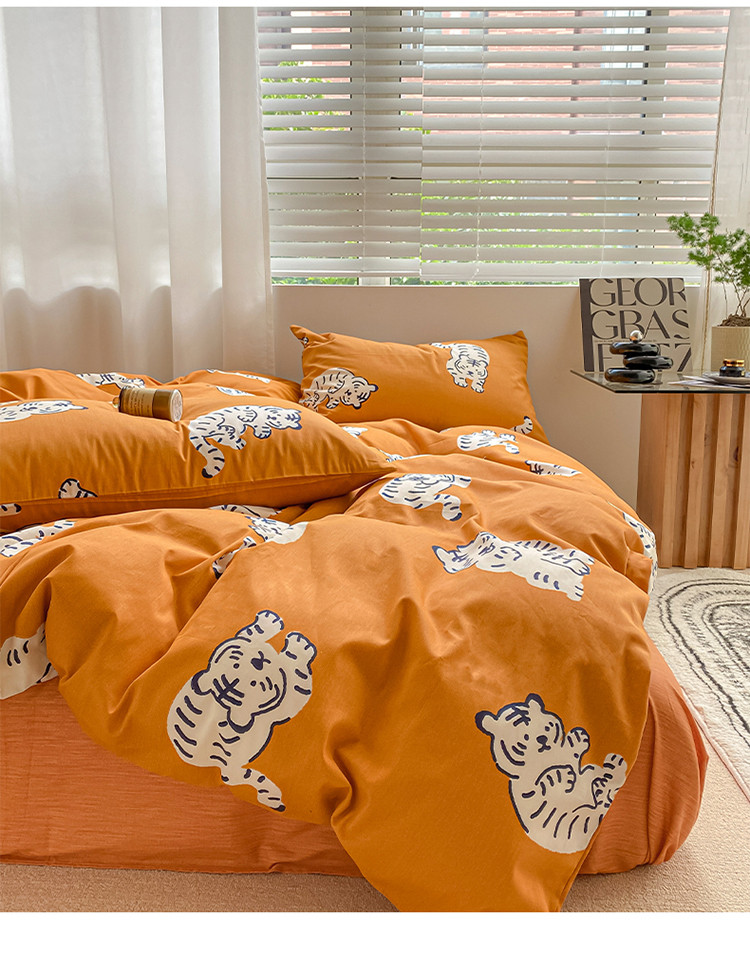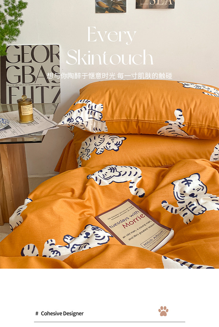 雅居纺 2022新款全棉13070印花小清新四件套 小虎虎橘