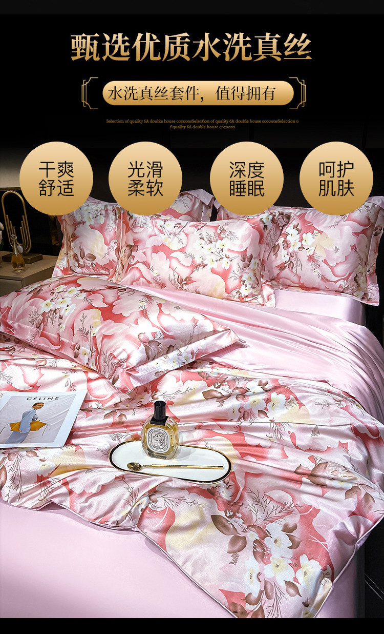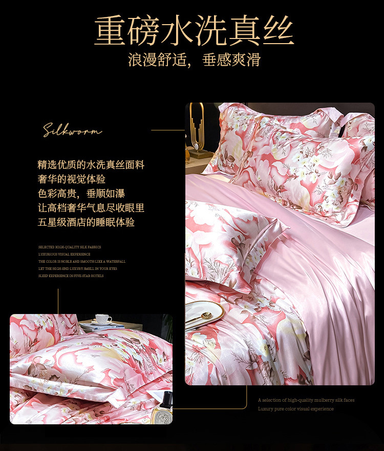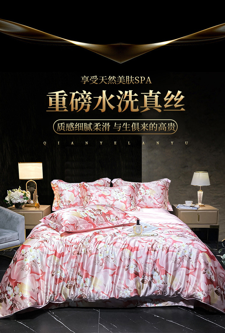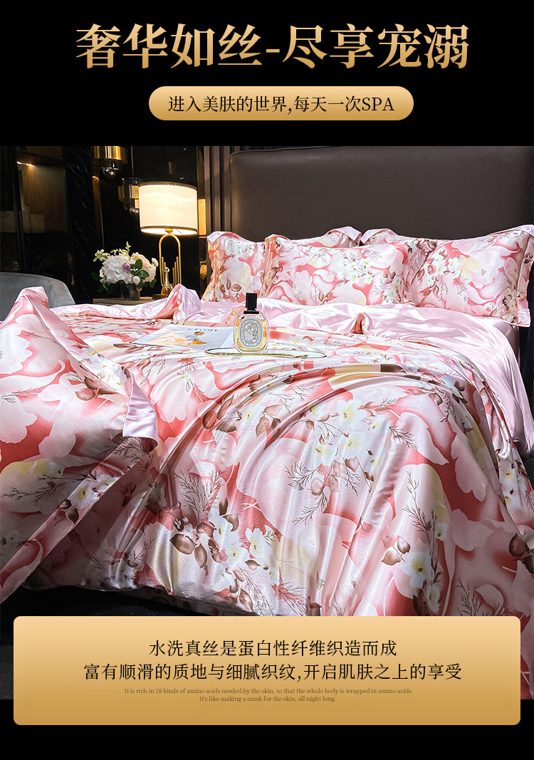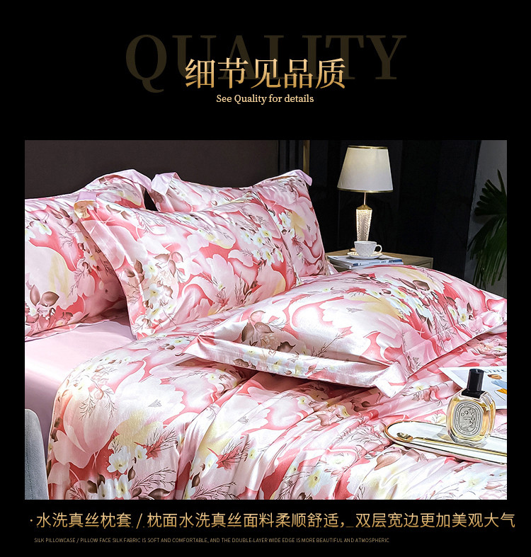 黄鹂鸟 2025新款高端轻奢丝滑裸睡丝绸数码印花水洗真丝天丝四件套系列 -风格二 花开富贵