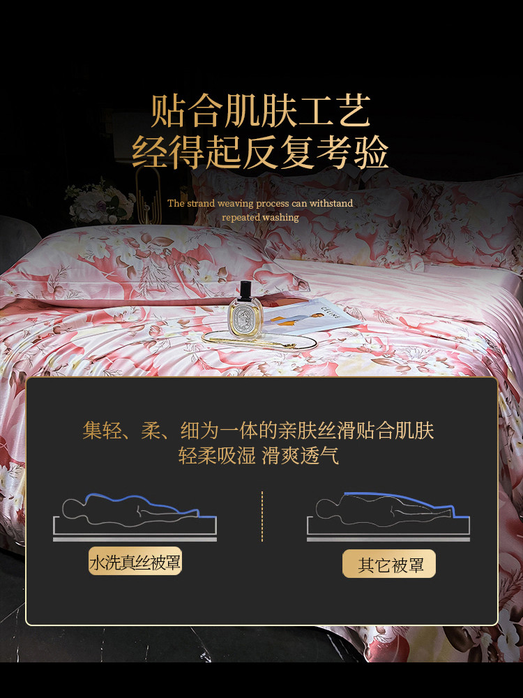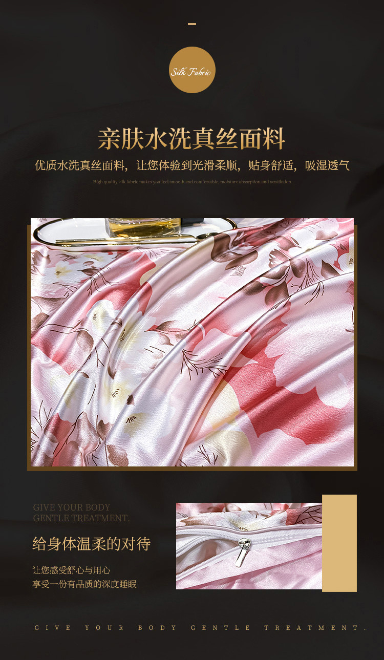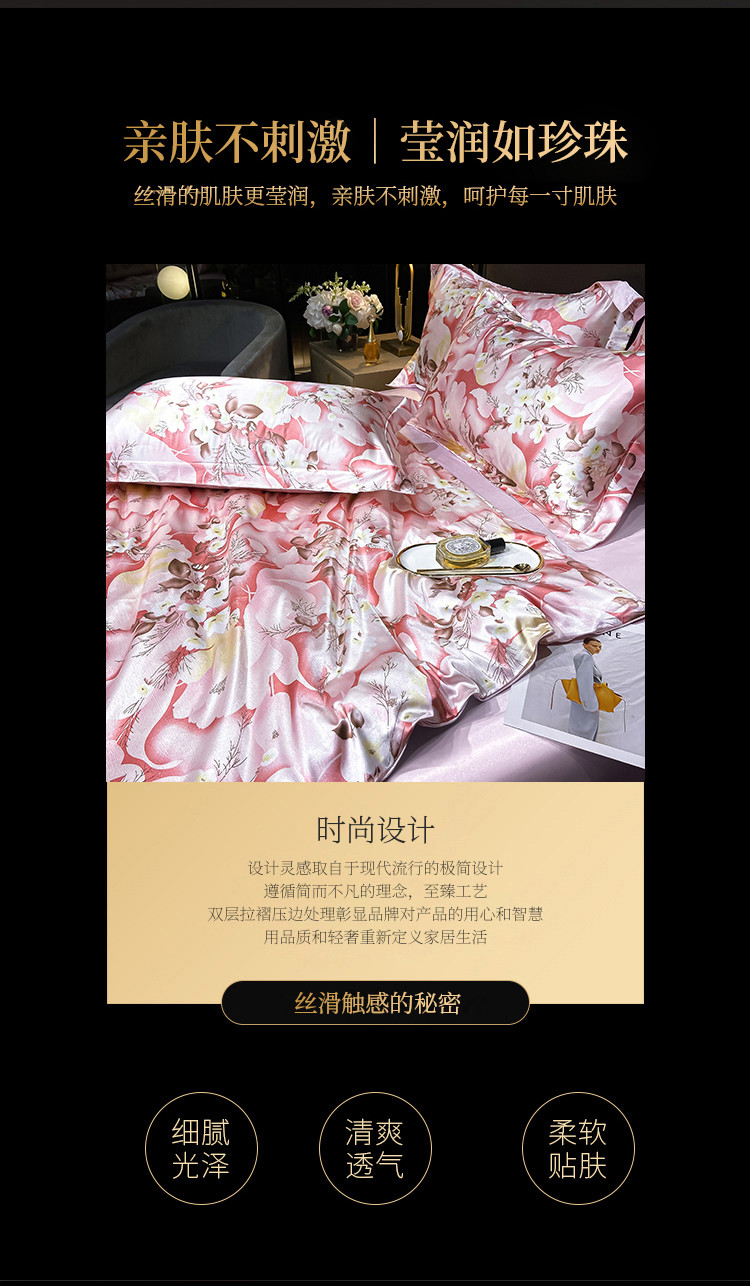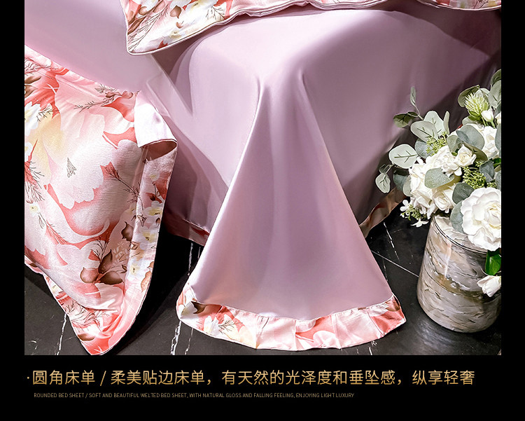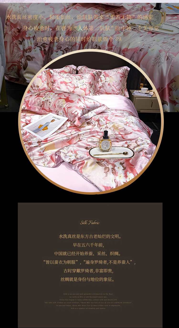 黄鹂鸟 2025新款高端轻奢丝滑裸睡丝绸数码印花水洗真丝天丝四件套系列 -风格二 花开富贵
